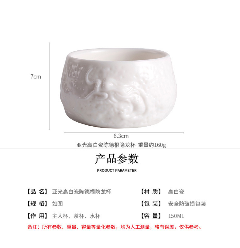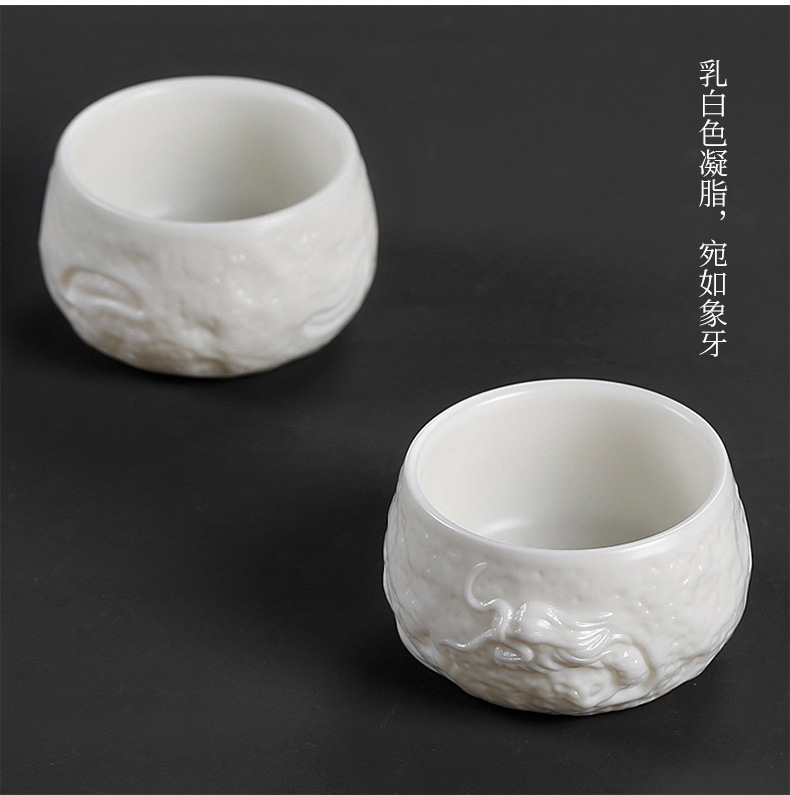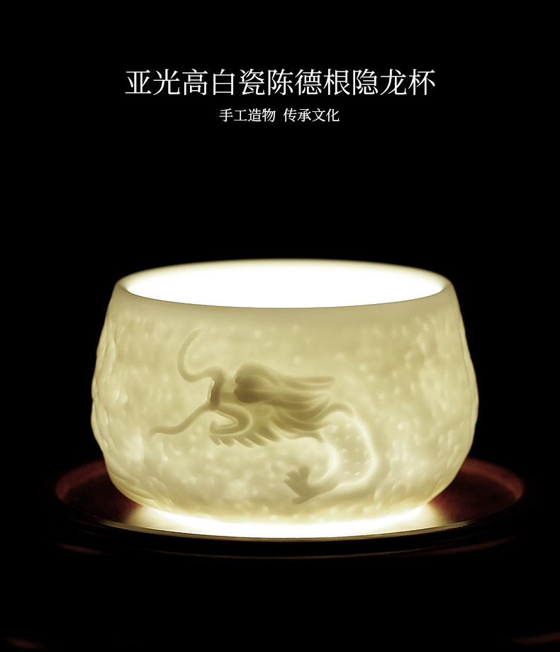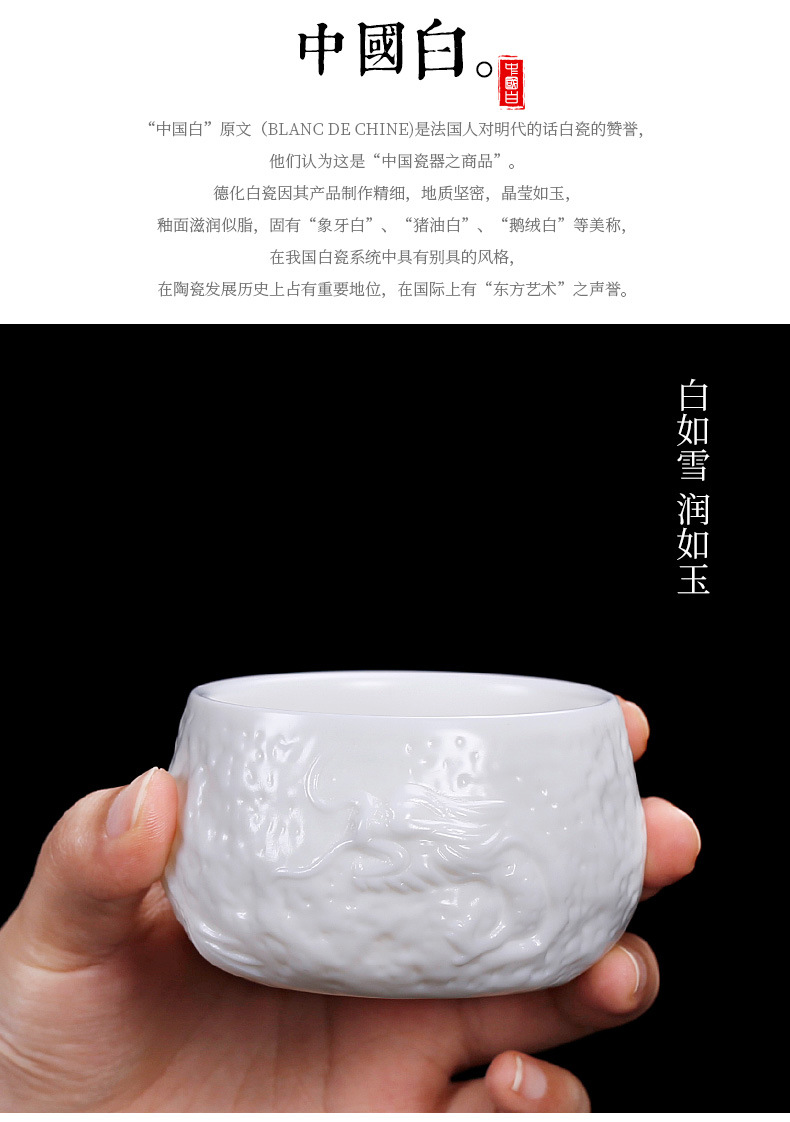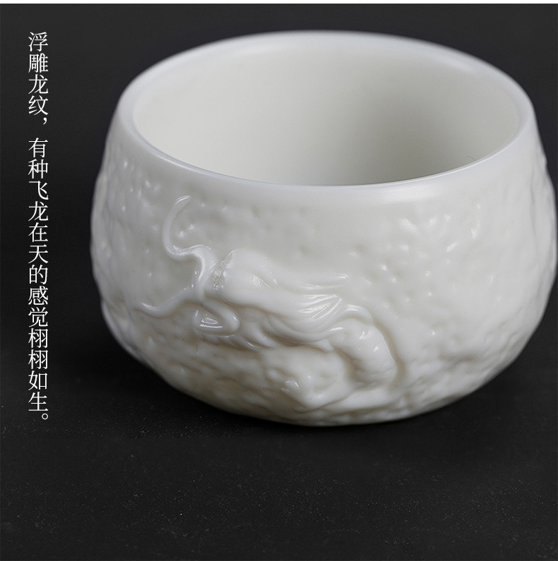 名家亚光素烧纯手工隐龙杯德化白瓷主人杯单杯羊脂玉单只陶瓷杯