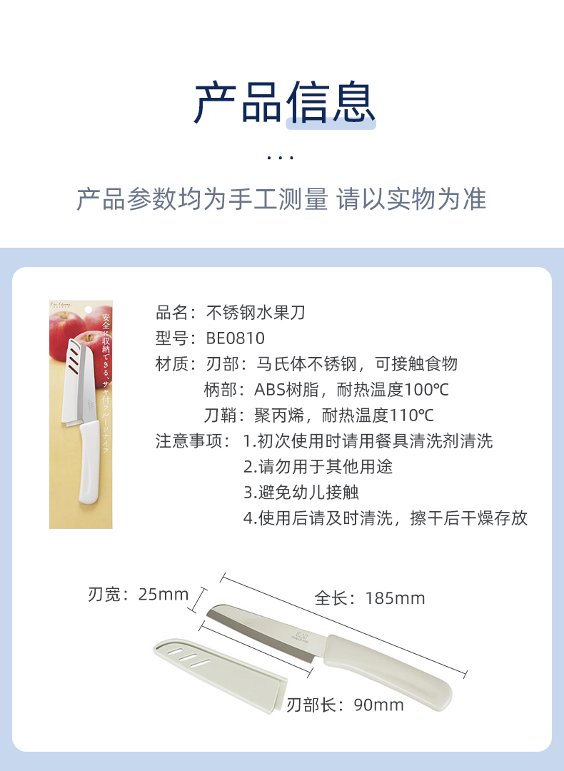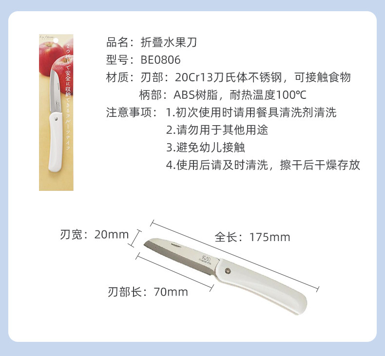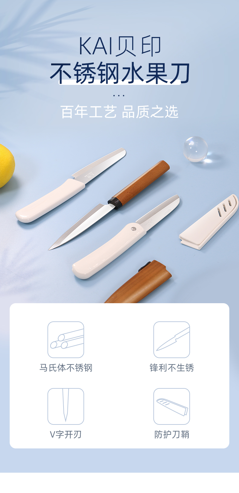 KAI贝印夏日水果刀家用厨房工具不锈钢水果刀削皮【不支持补差,非质量问题不退不换】S
