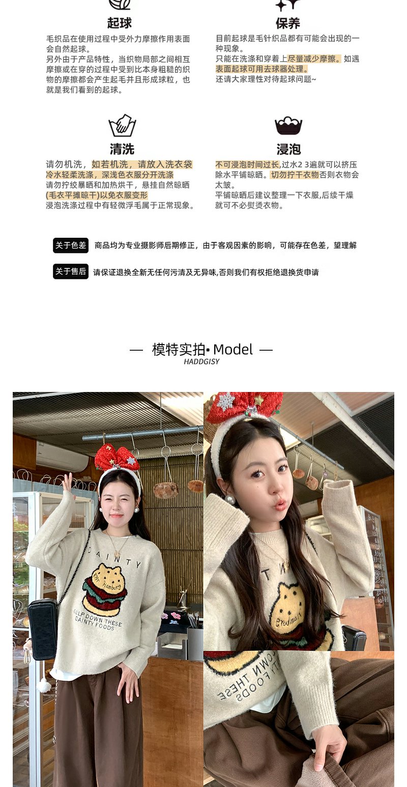 <曾小咸推荐>趣味汉堡绣花套头毛衣