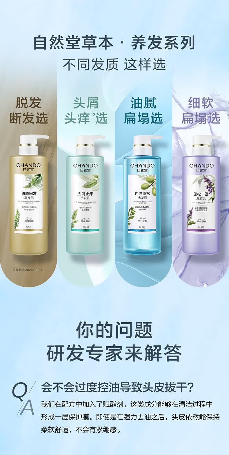 自然堂控油蓬松洗发露600ml