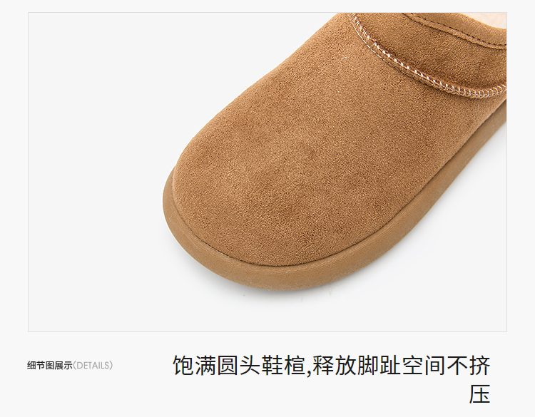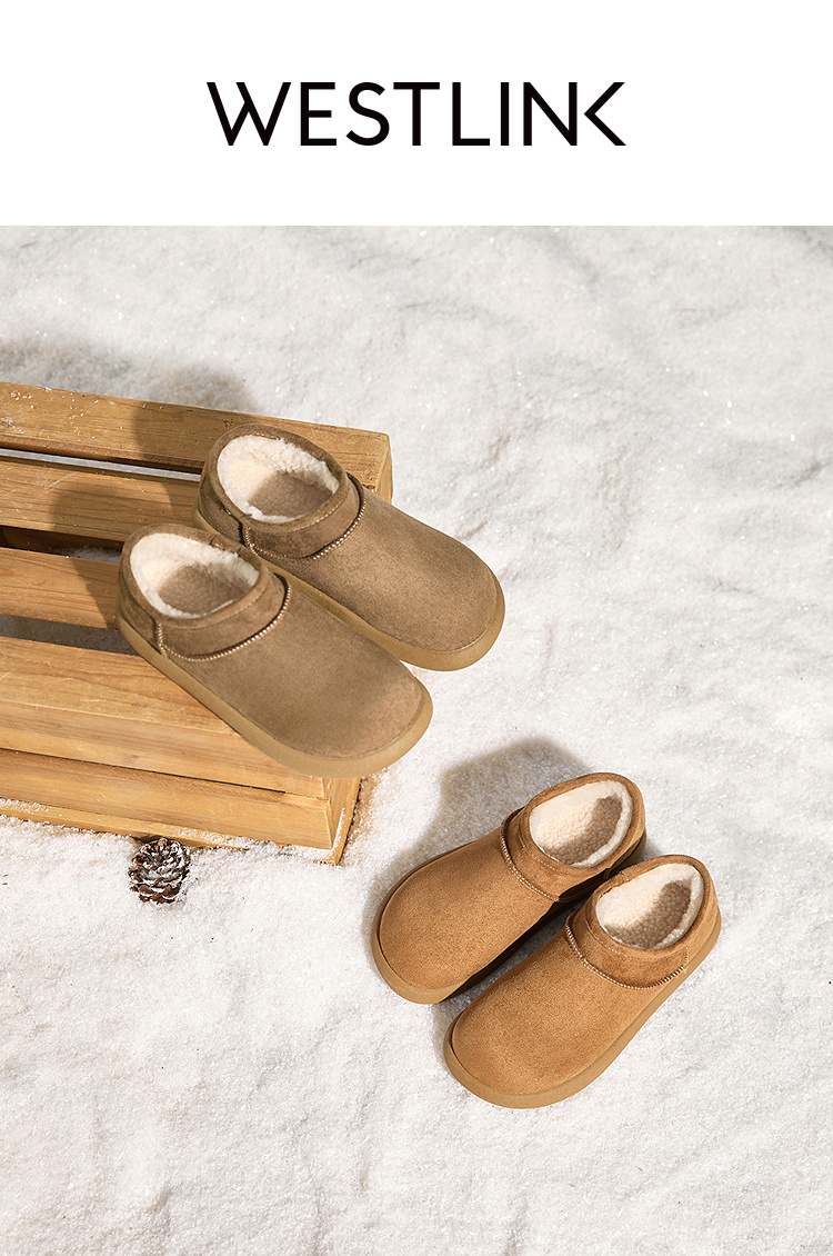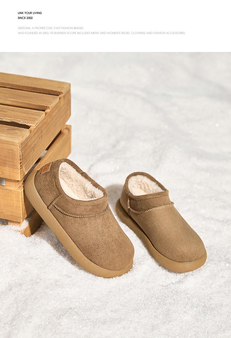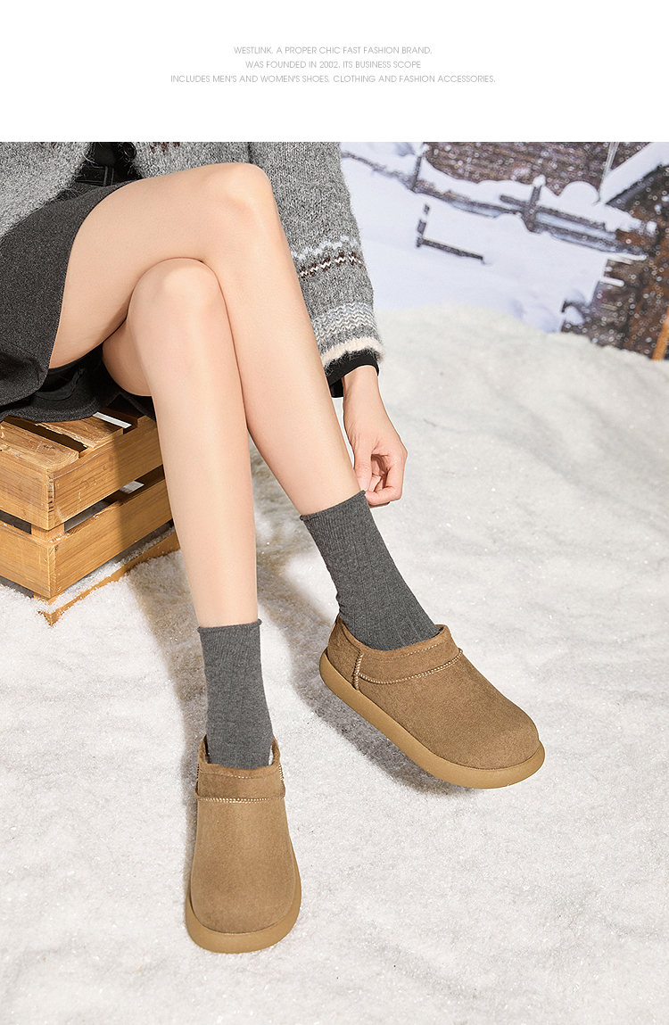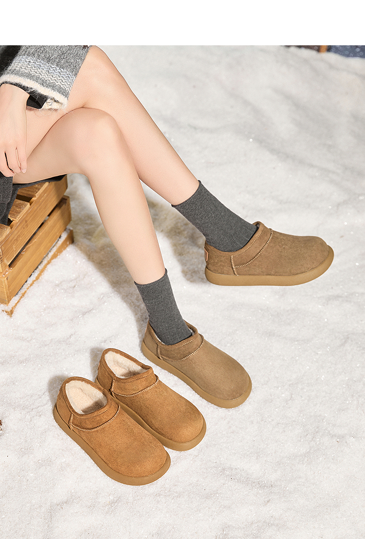 西遇加绒雪地靴女新款冬季复古百搭低帮短靴外穿保暖加厚棉鞋V2457329