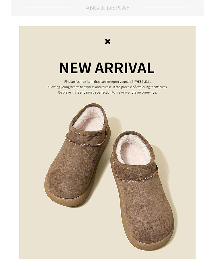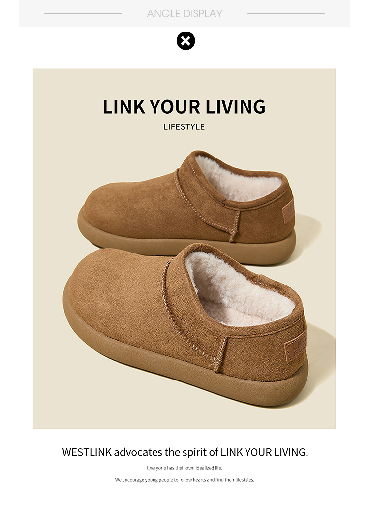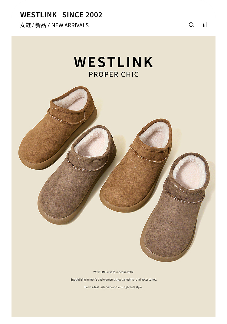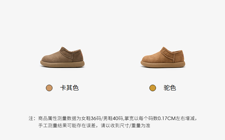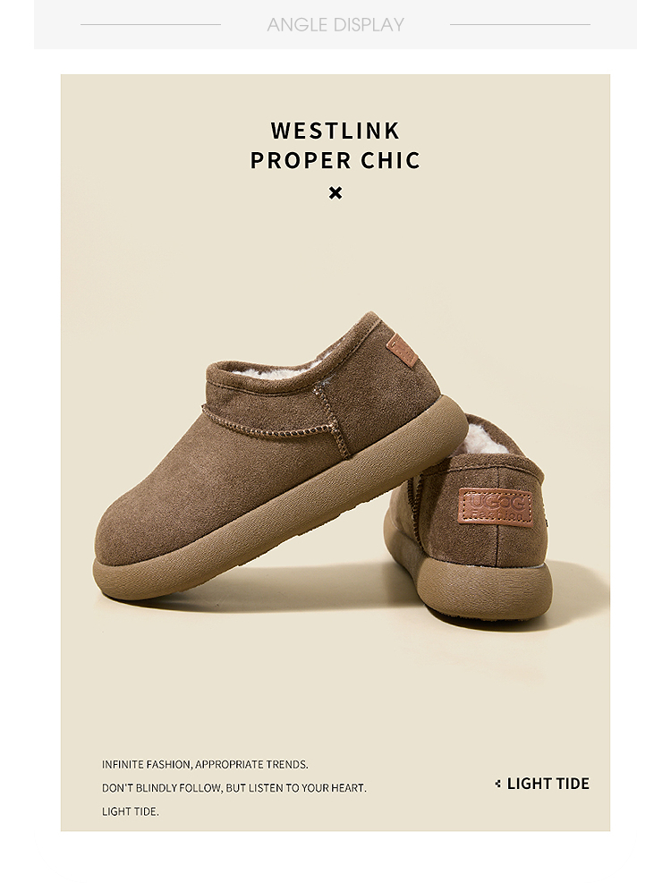 西遇加绒雪地靴女新款冬季复古百搭低帮短靴外穿保暖加厚棉鞋V2457329
