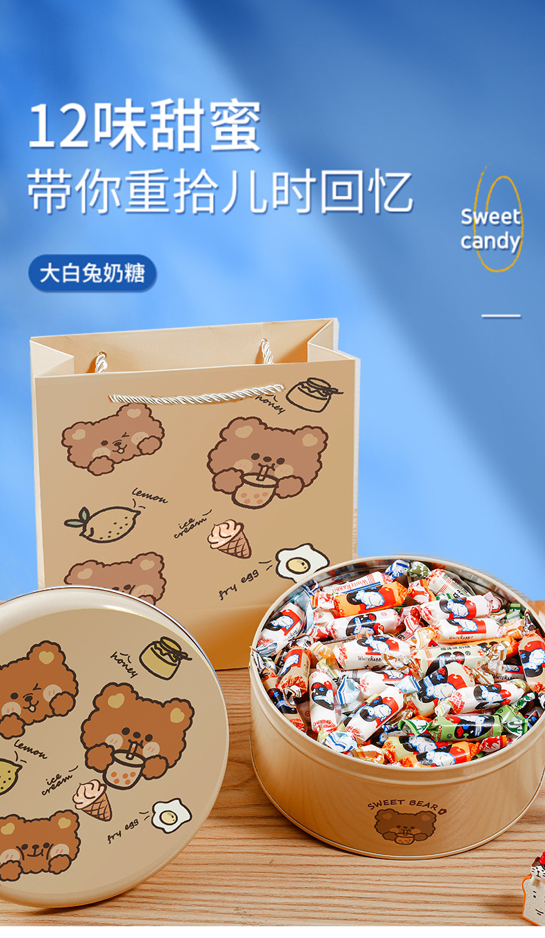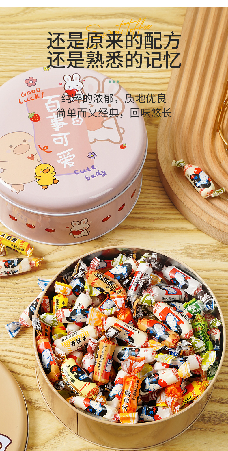 【冠生园大白兔奶糖礼盒装】回忆童年,味蕾再现。香滑浓郁。混合口味,为味蕾带来更多惊喜。是一份口感和心情的甜蜜礼物,送给亲朋好友都相宜;元旦、情人节、生日与新年,每一个重要时刻都不能错过!