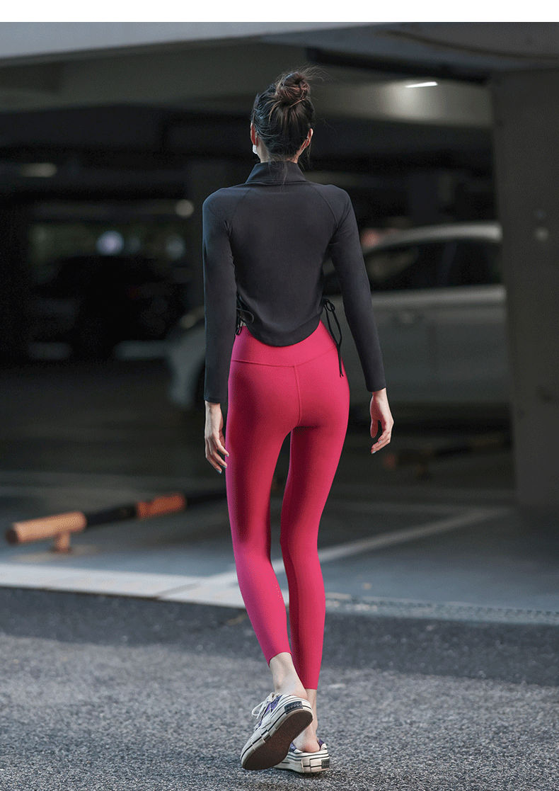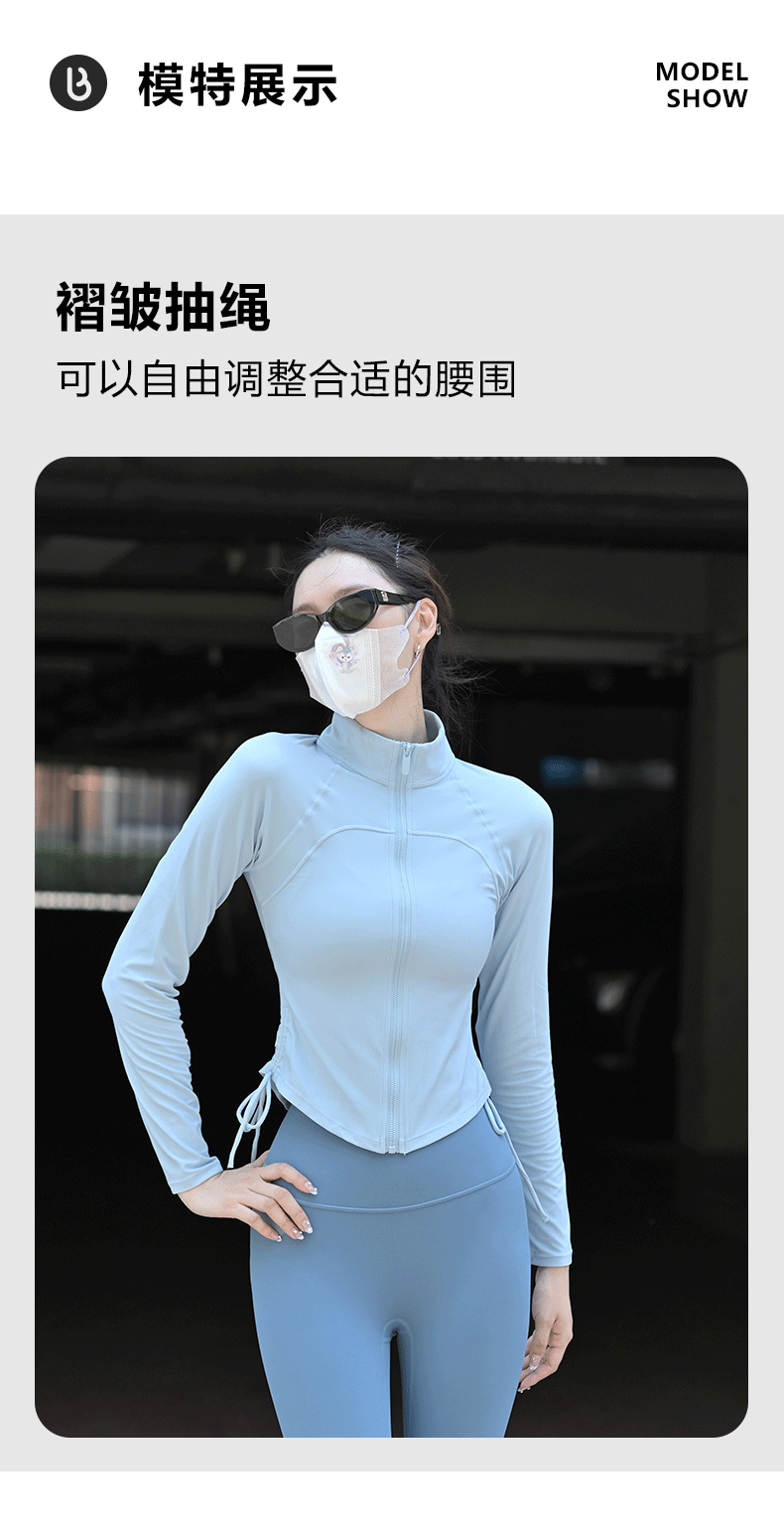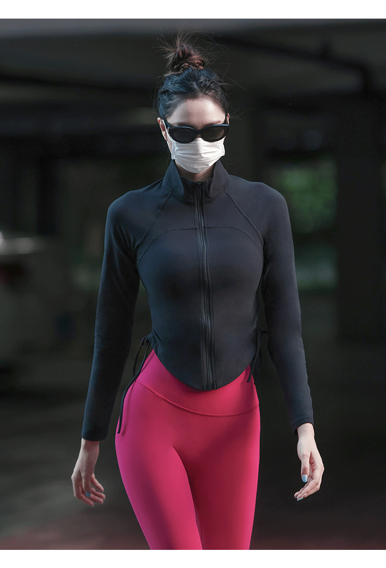 Beemen瑜伽服上衣女紧身磨毛长袖健身抽绳运动外套秋季