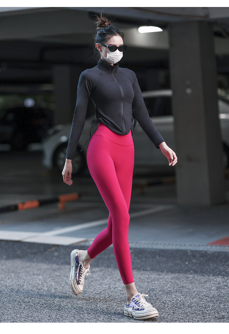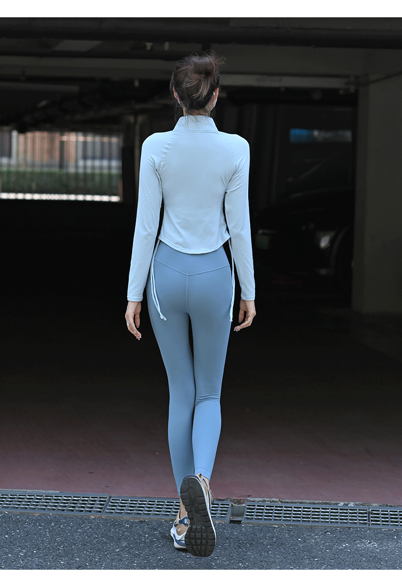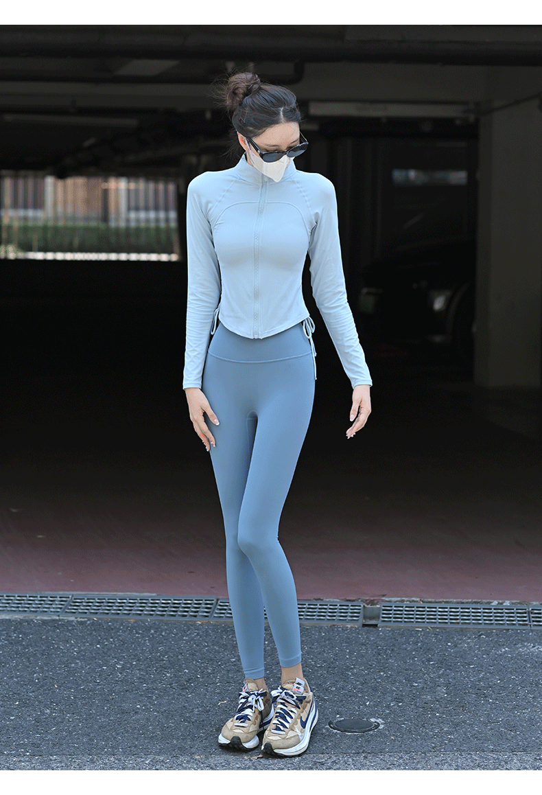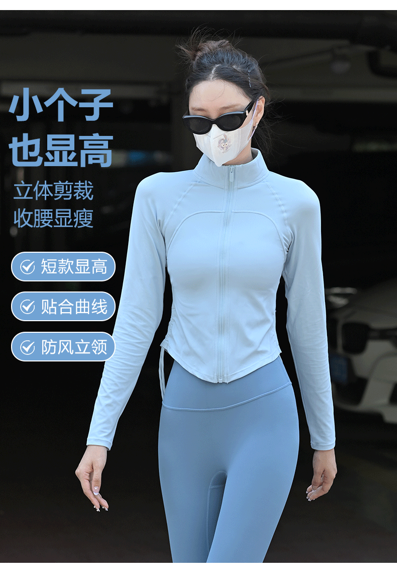 Beemen瑜伽服上衣女紧身磨毛长袖健身抽绳运动外套秋季