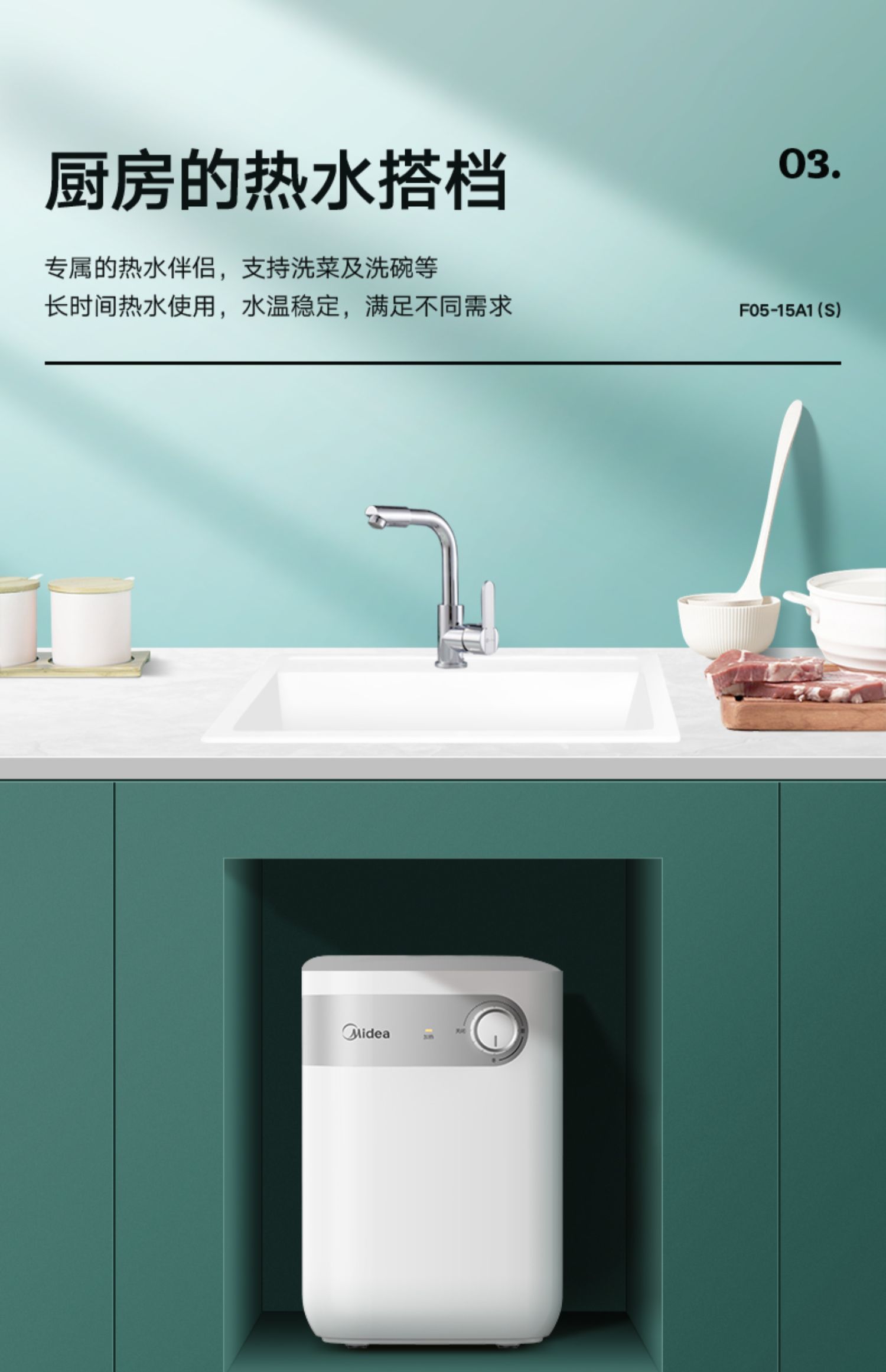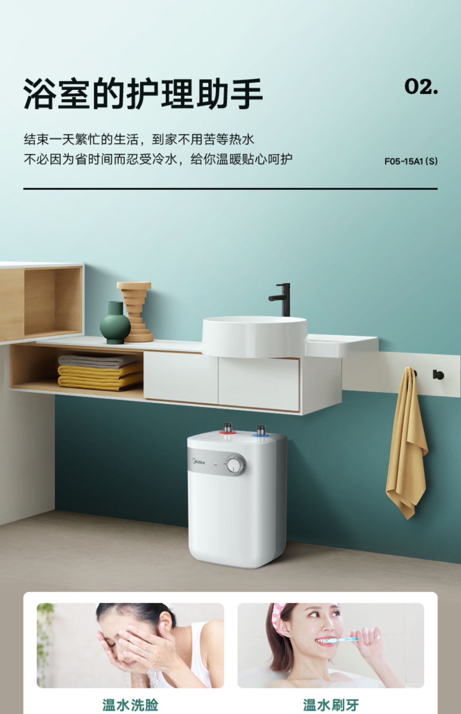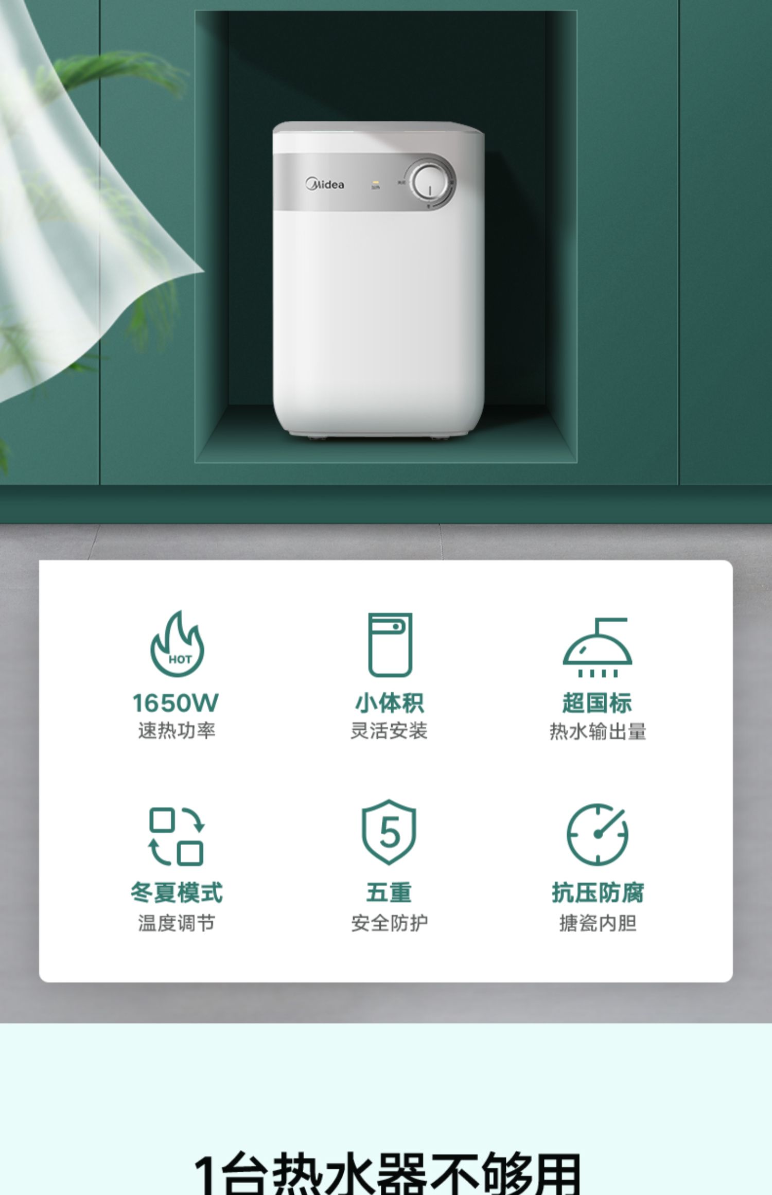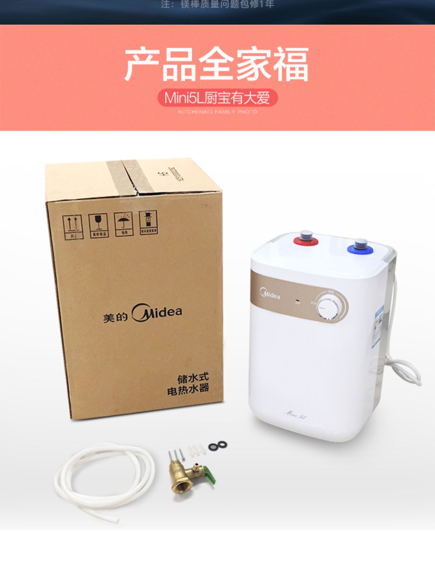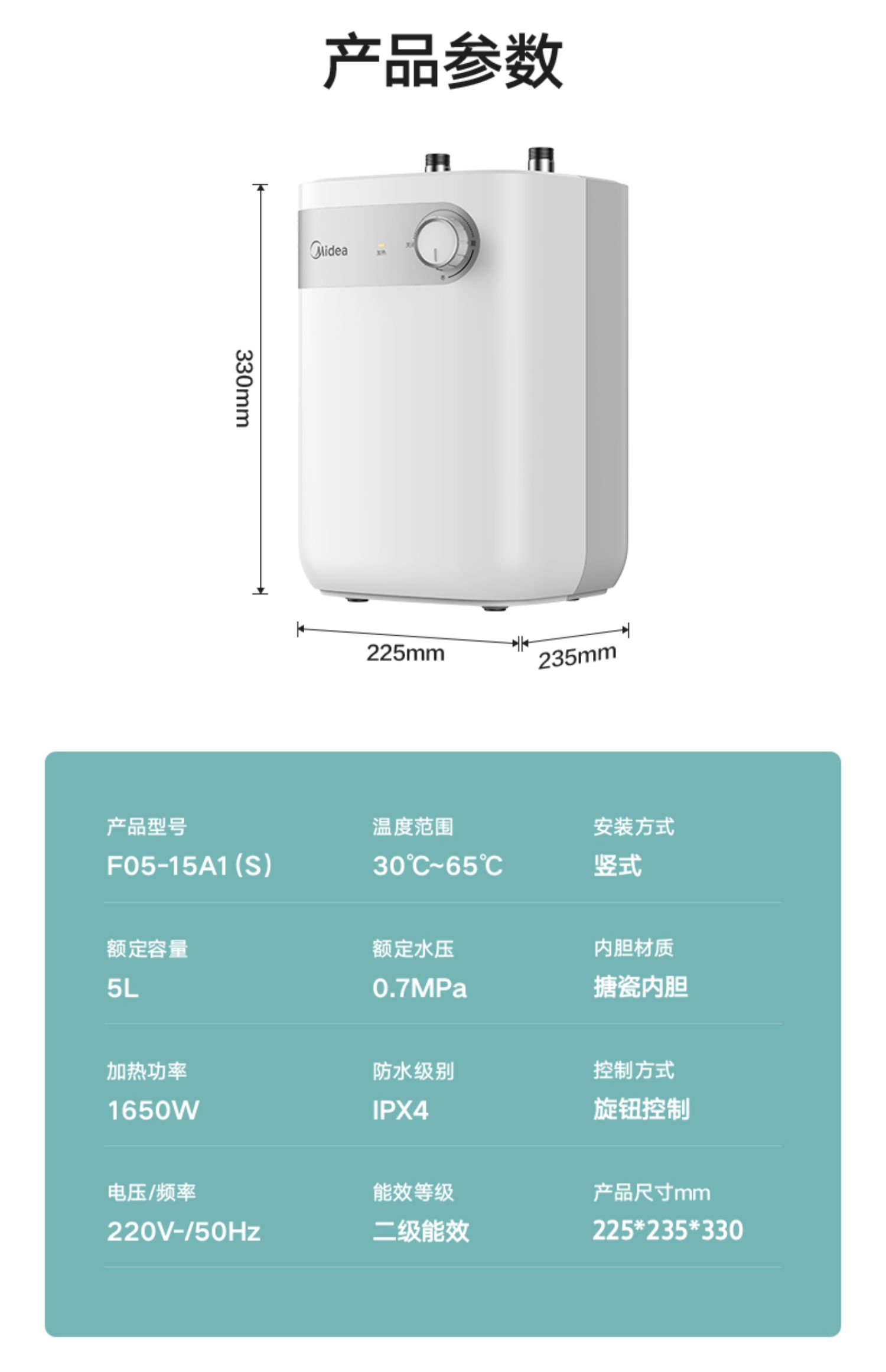 美的 F05-15A2(S) 电热水器恒温上出水5L家用 极地白 机械