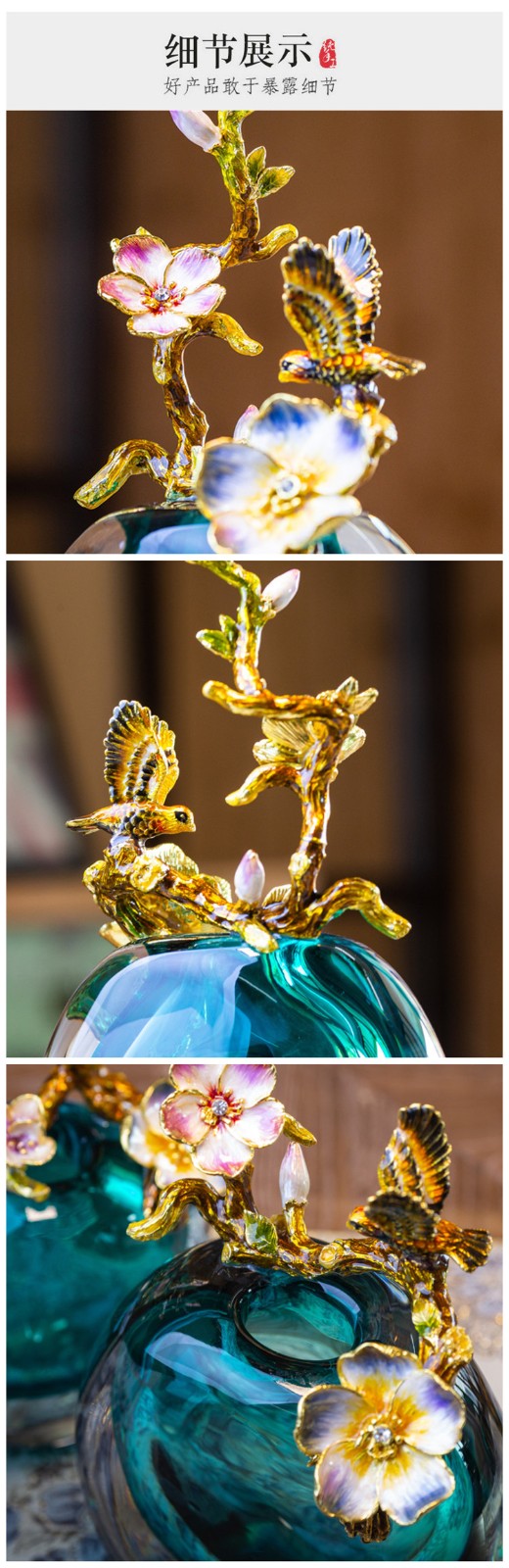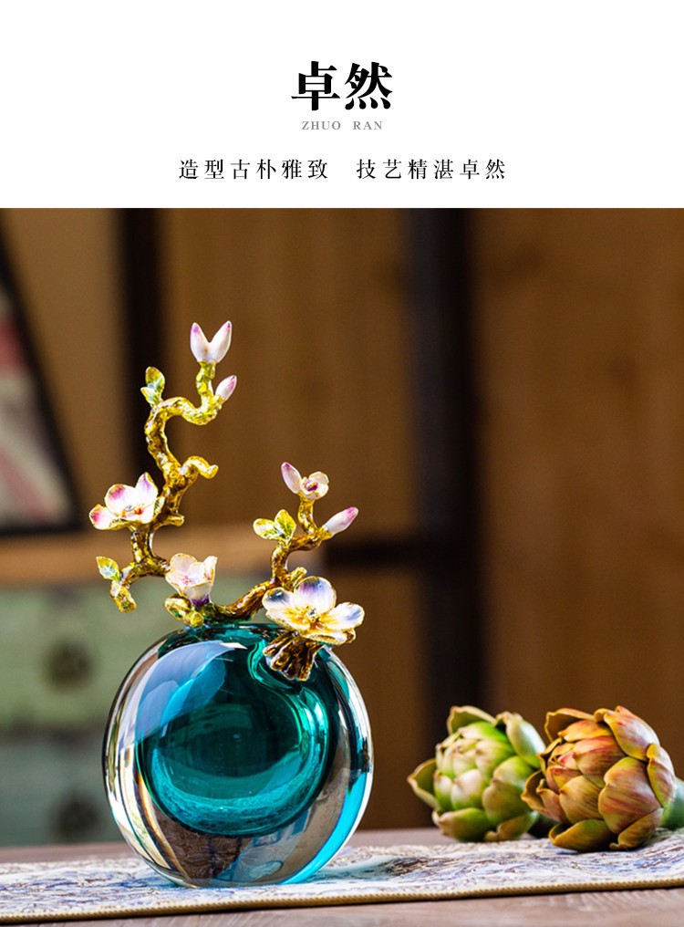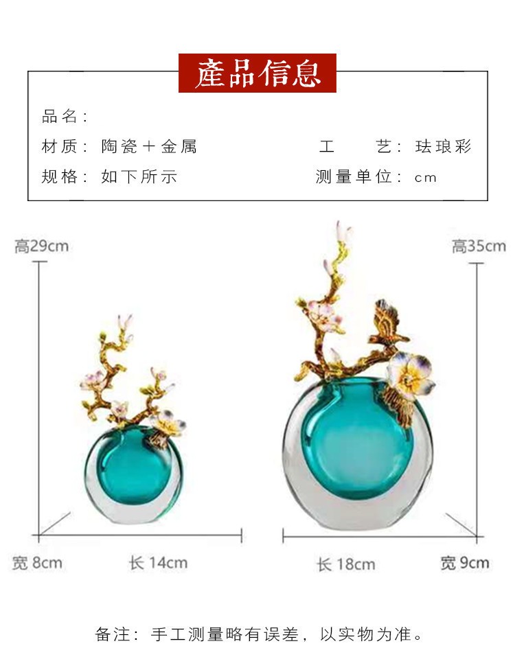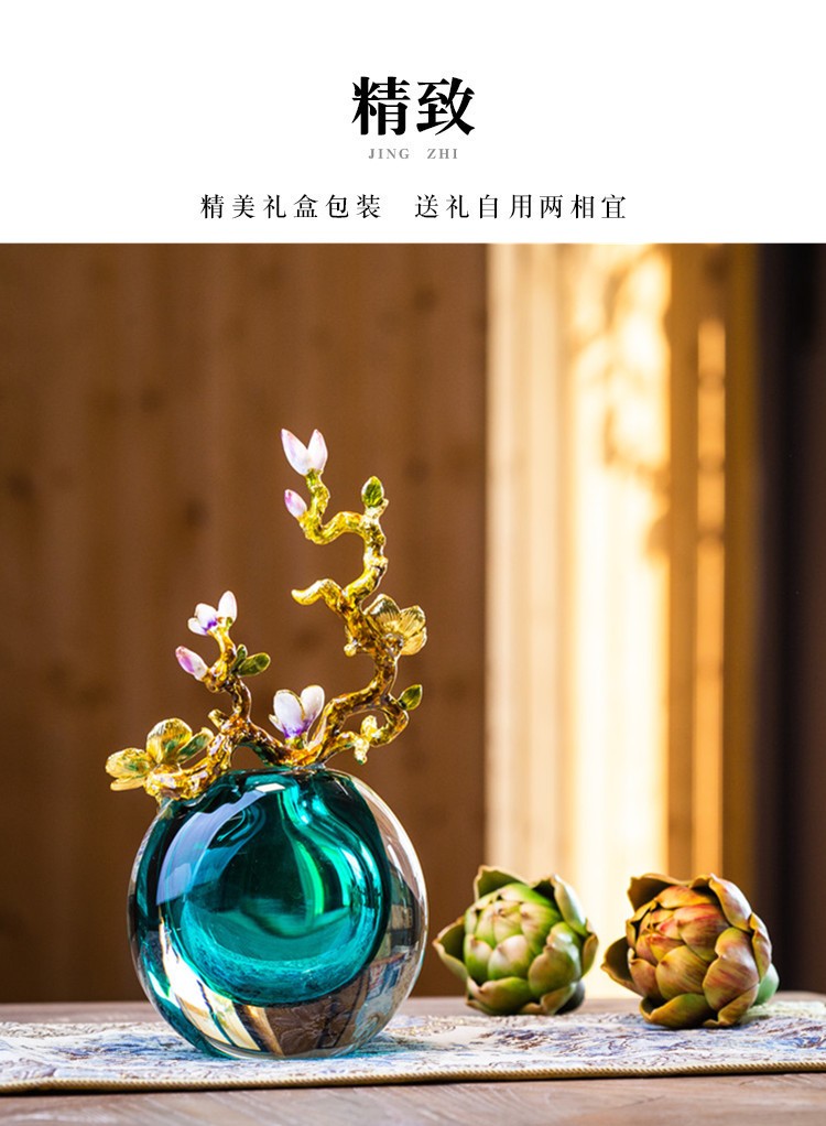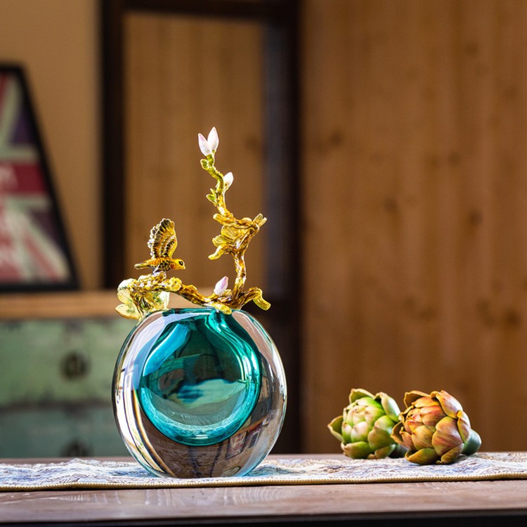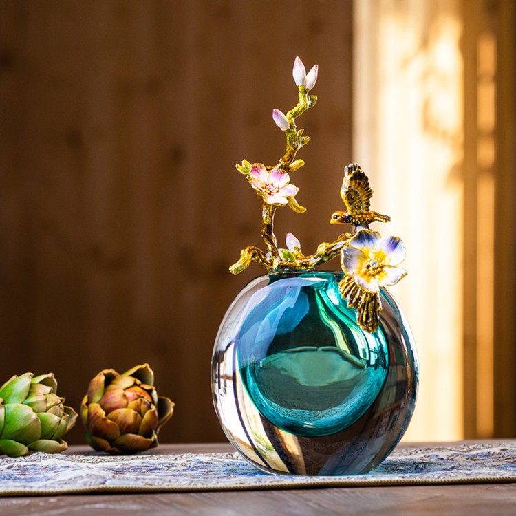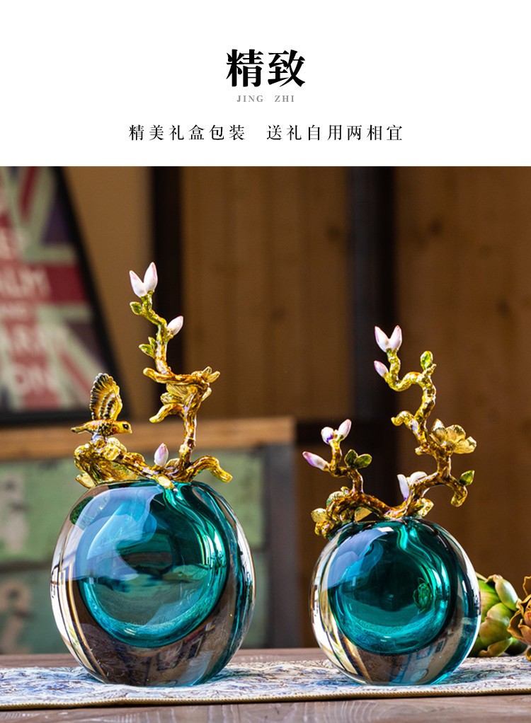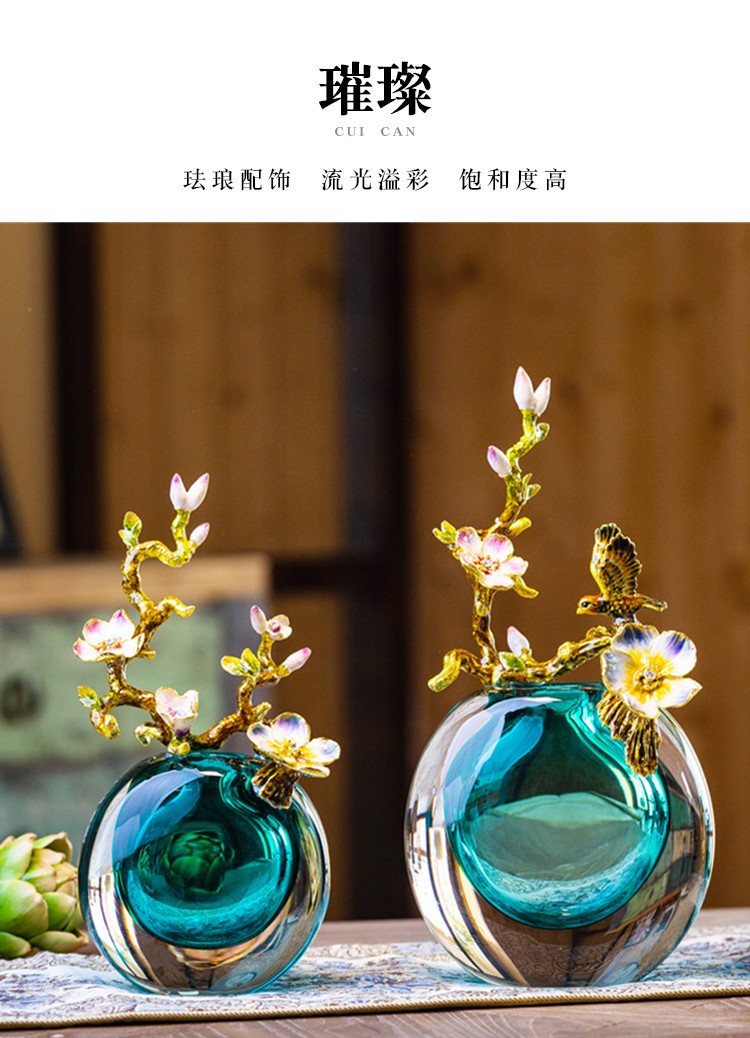 轻奢高端珐琅彩玻璃花瓶摆件客厅玄关欧式家居家居装饰品海洋之心【不支持补差,非质量问题不退不换】S
