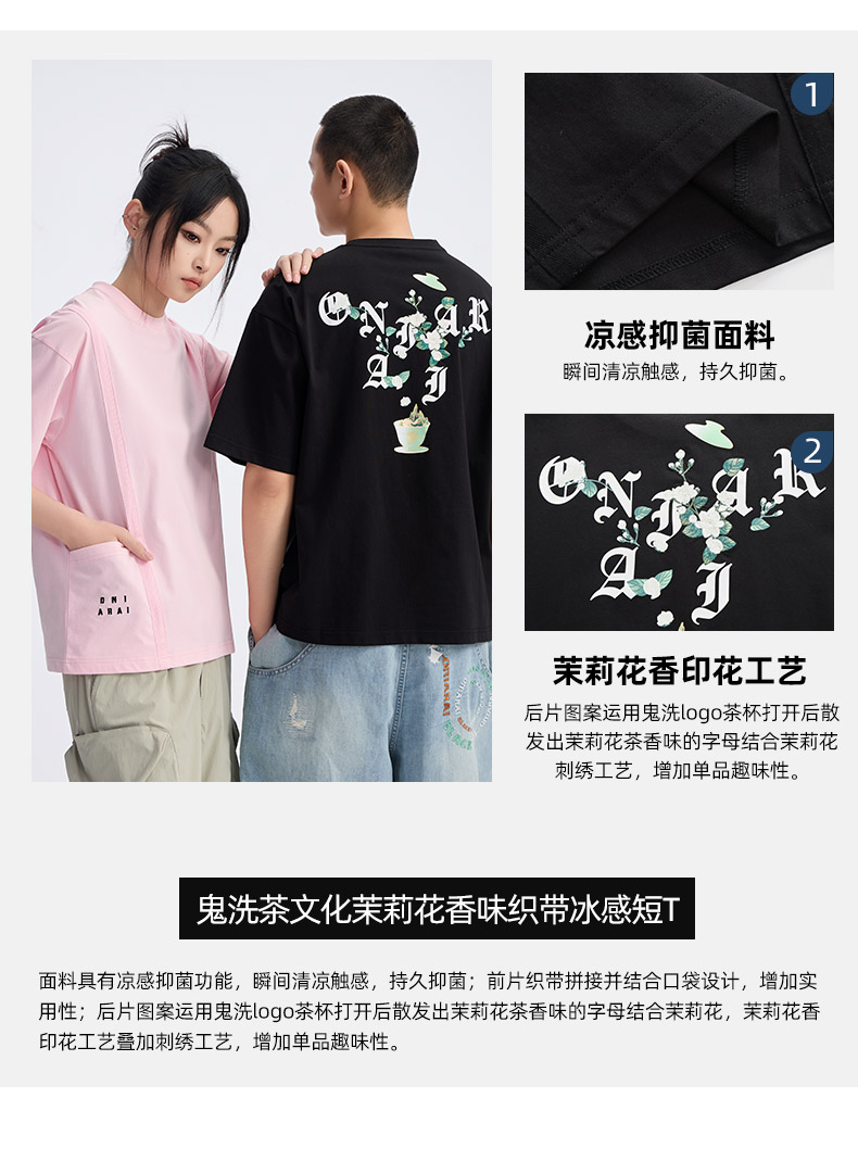 ONIARAI/鬼洗25春夏新茶文化茉莉花香味凉感短袖男女款 B840269