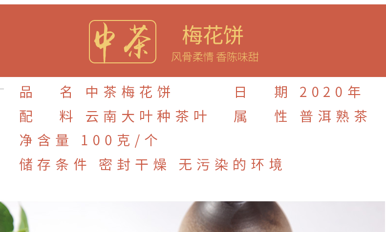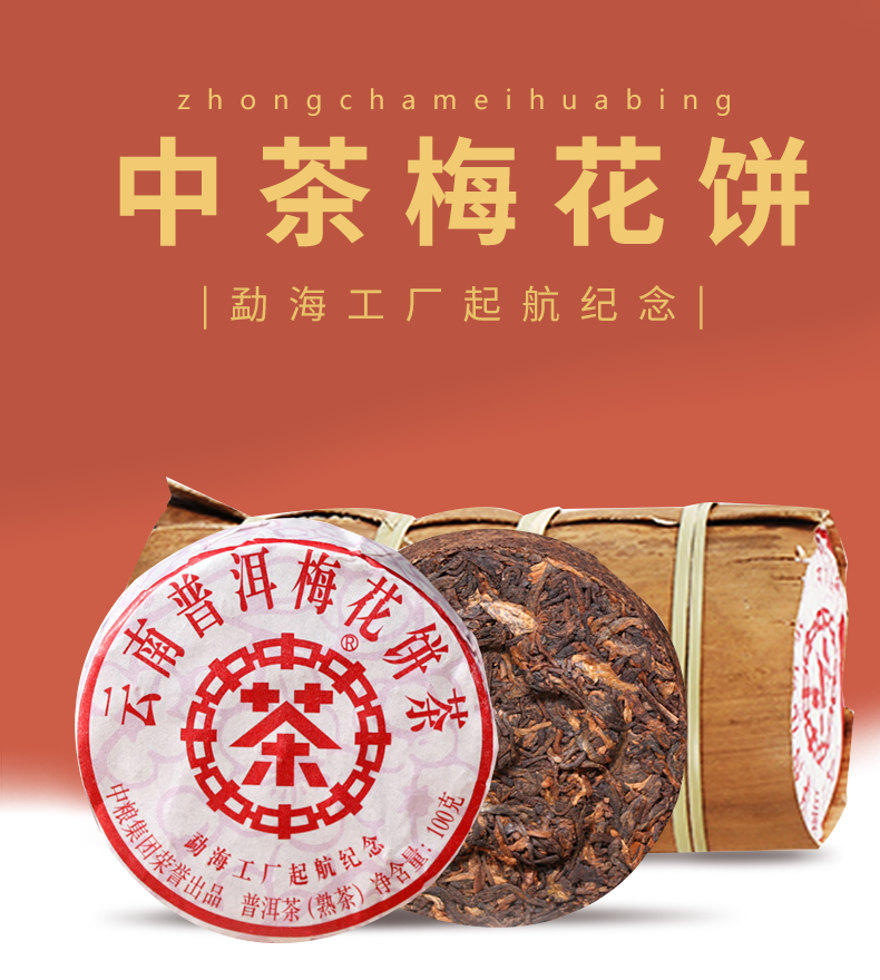 中粮-中茶梅花饼(熟茶)勐海工厂启航纪念款100g /云南干仓直发