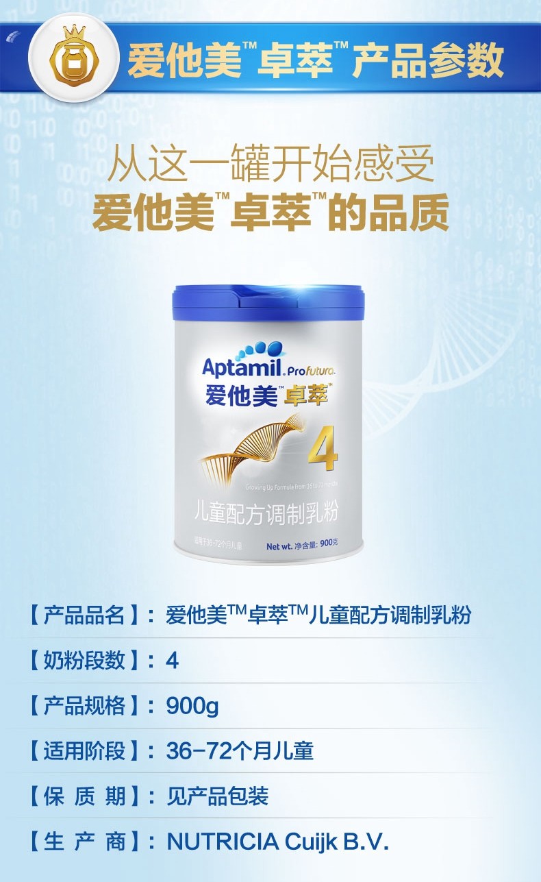 爱他美 卓萃白金版4段奶粉 900g 两罐装