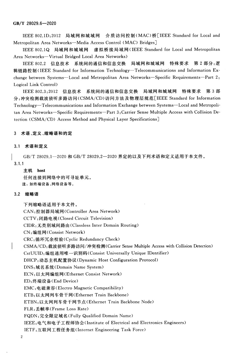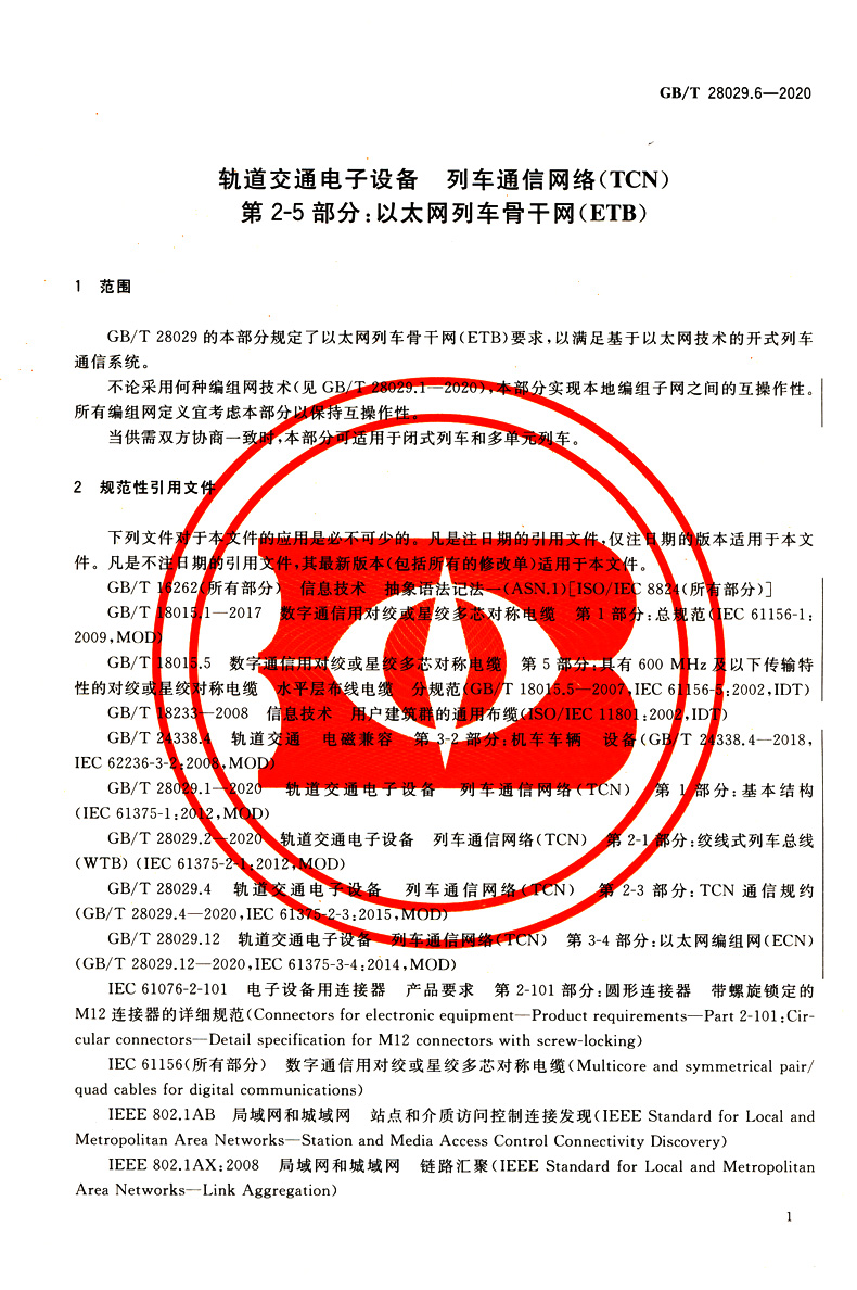 书名:GB/T 28029.6-2020 轨道交通电子设备 列车通信网络(TCN) 第2-5部分:以太网列车骨干网(ETB)