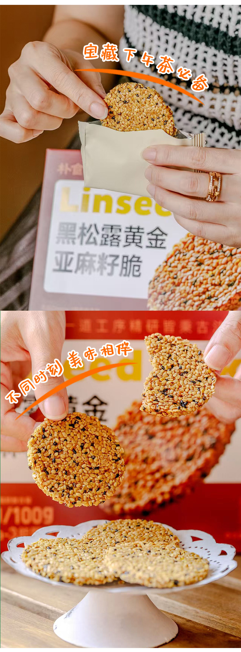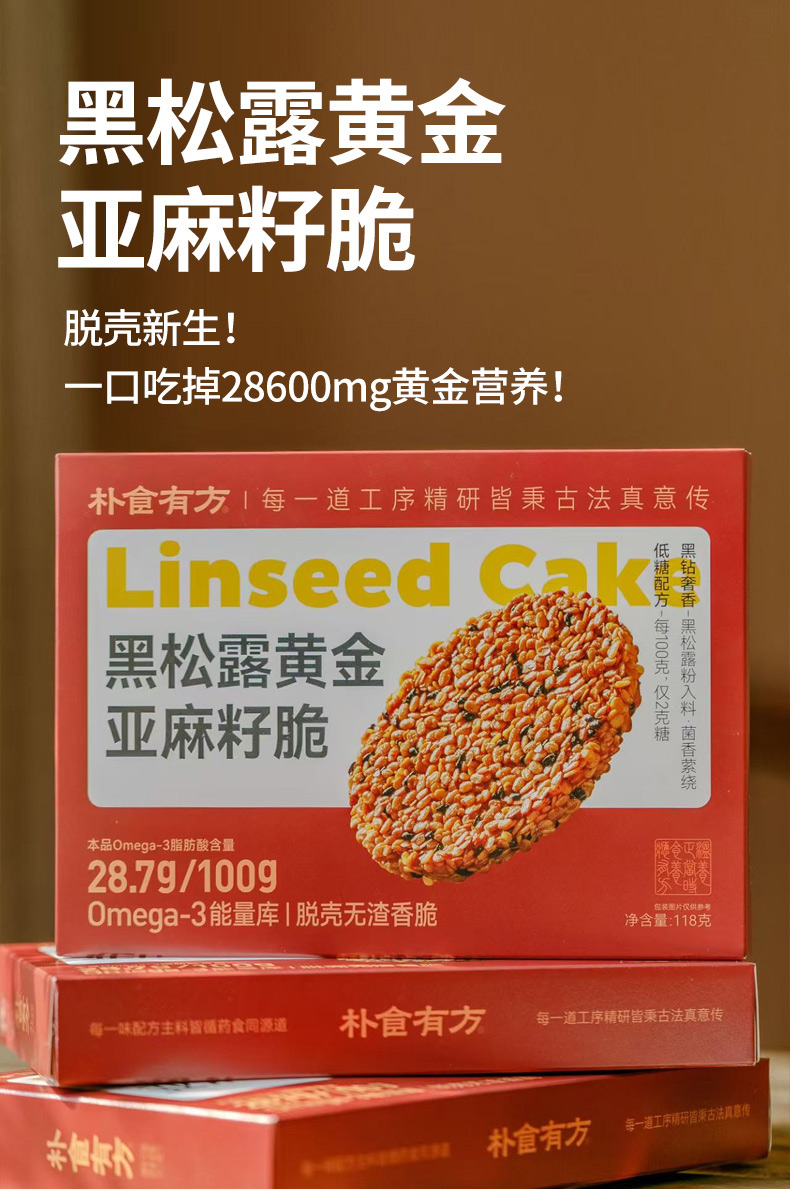 黑松露黄金亚麻籽脆 粗粮酥脆饼干休闲零食代餐118g/盒【京东快递送货上门】