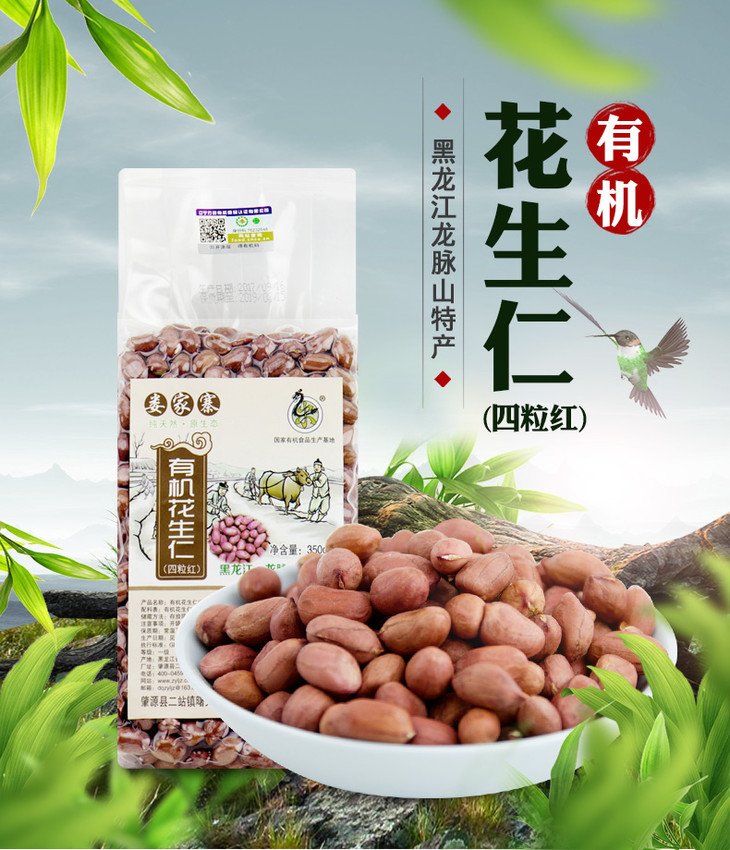 娄家寨有机四粒红花生米350g*2袋 红衣花生 剥壳红皮东北花生仁支持自提