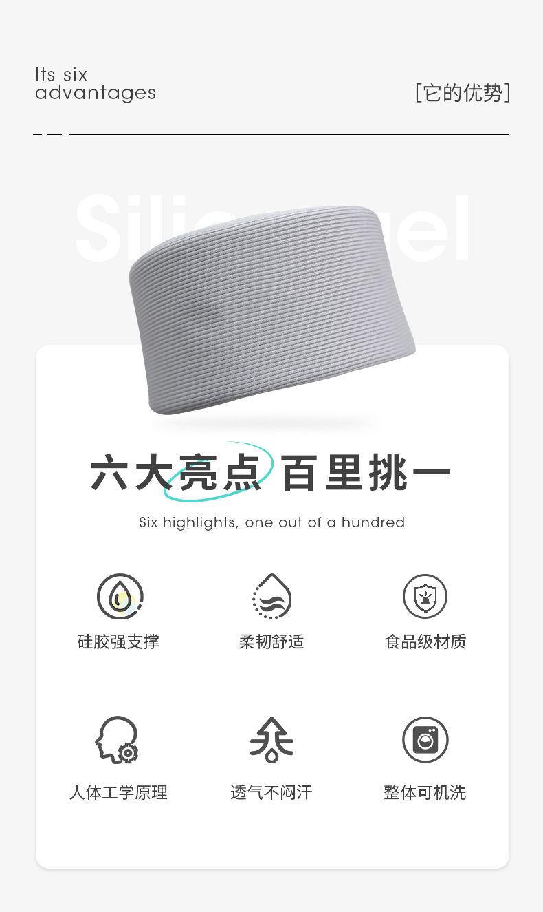 | 【产品名称】:硅胶护颈脖套 【泰国品牌】:TAIHI泰嗨 【产品型号】:THGJBT01-S/M/L 【产品材质】:食品级硅胶 【产品面料】:95%聚酯纤维+5%氨纶 【产品颜色】:灰色 【产品尺寸】:S M L 【产品包装】:精美包装袋 【适用季节】:四季 【产品卖点】:告别低头族 立体支撑 呵护颈椎 食品级硅胶内芯 整体可洗 透气舒适不长霉,居家,办公,旅行神器 |
