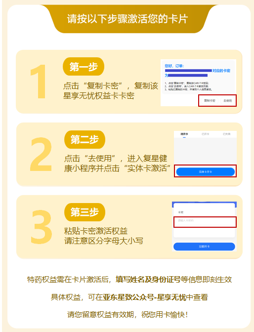 此卡请务必权益人本人激活!!!