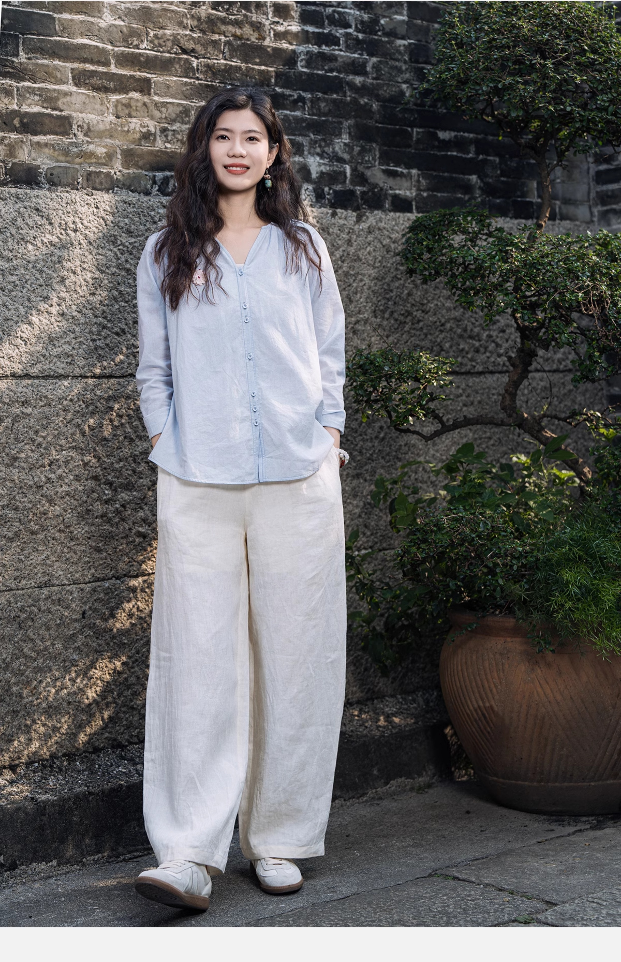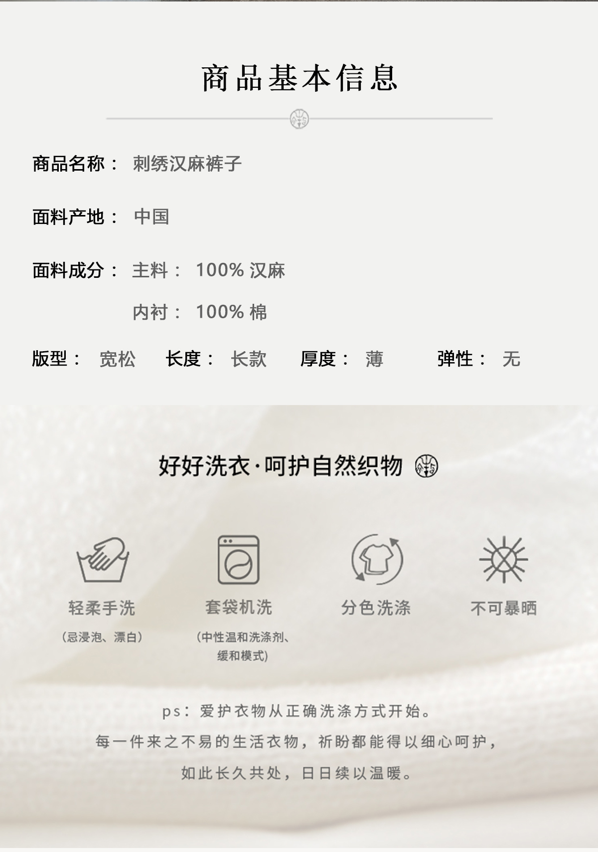 牧衣游原创 刺绣汉麻棉裤子夏 限量福利款 轻麻拾忆不支持会员折
