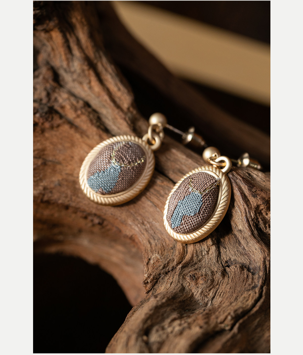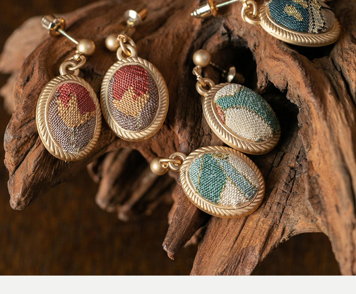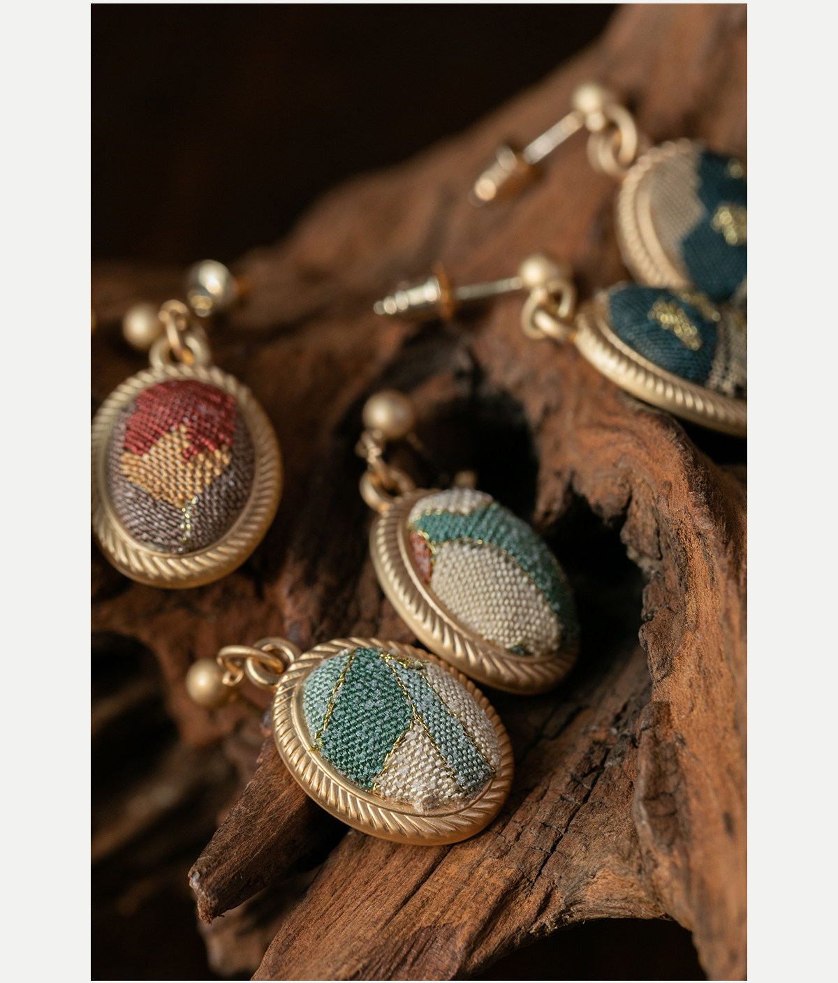 牧衣游缂丝手艺雕镂肌理东方复古椭圆耳环 柳吟【不支持会员折】