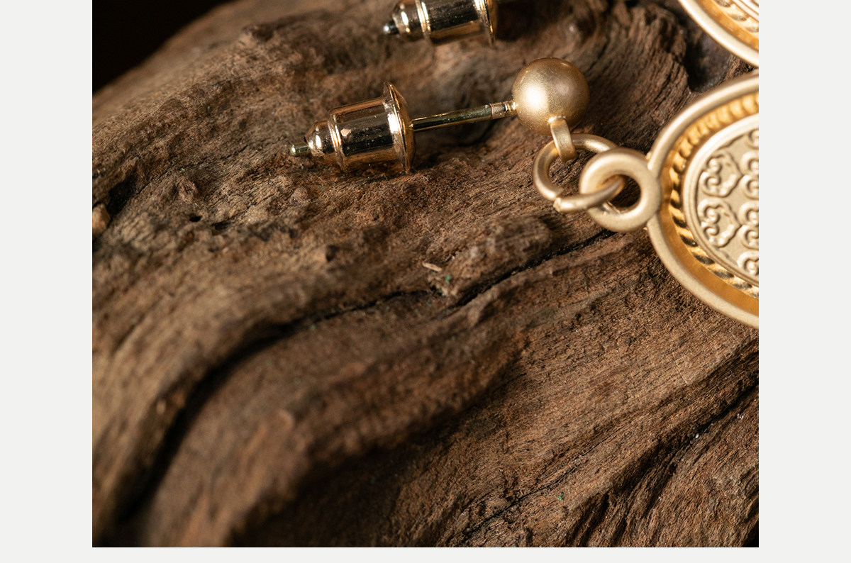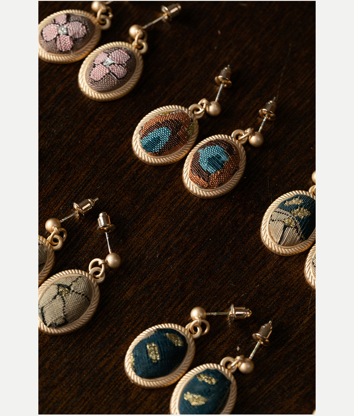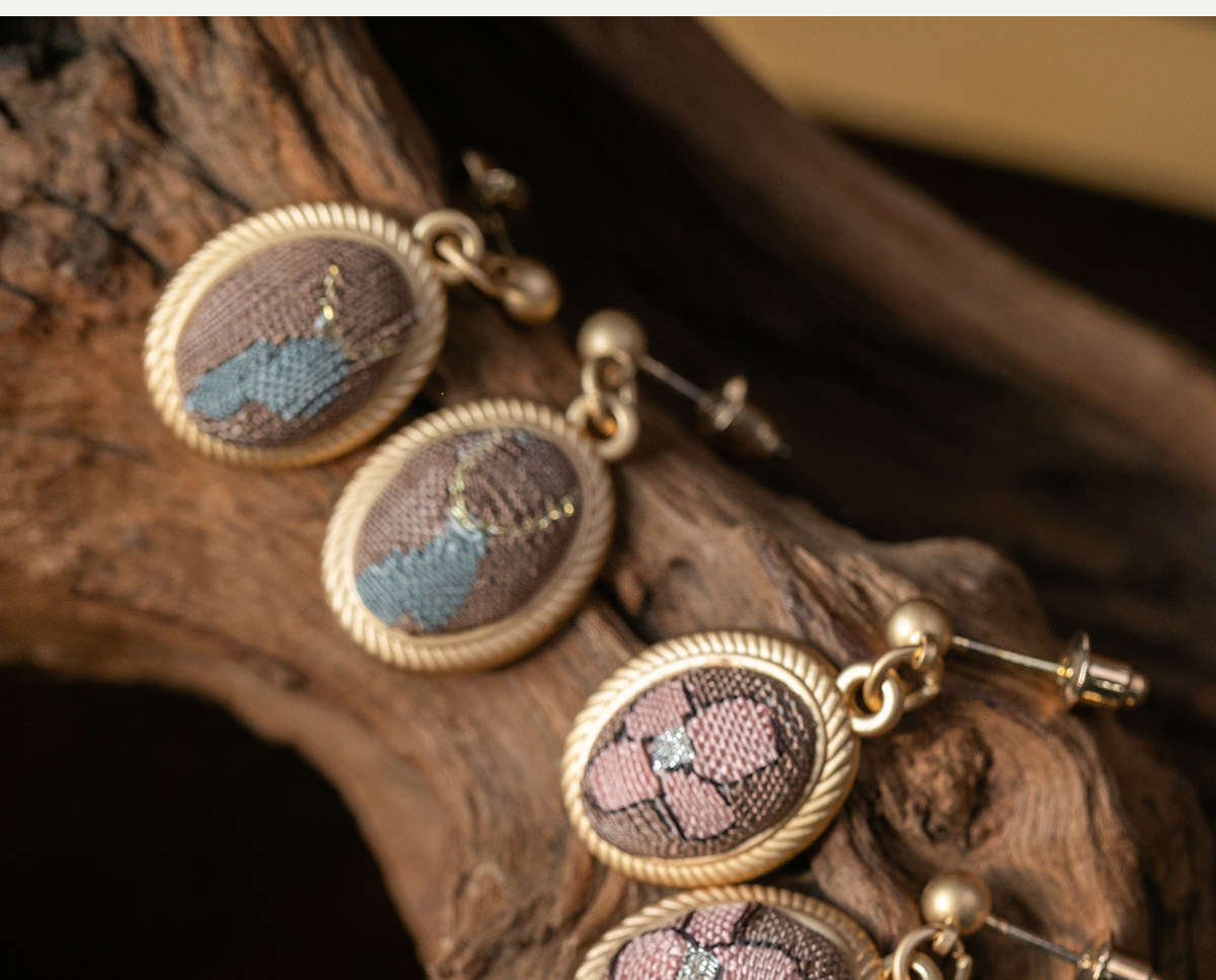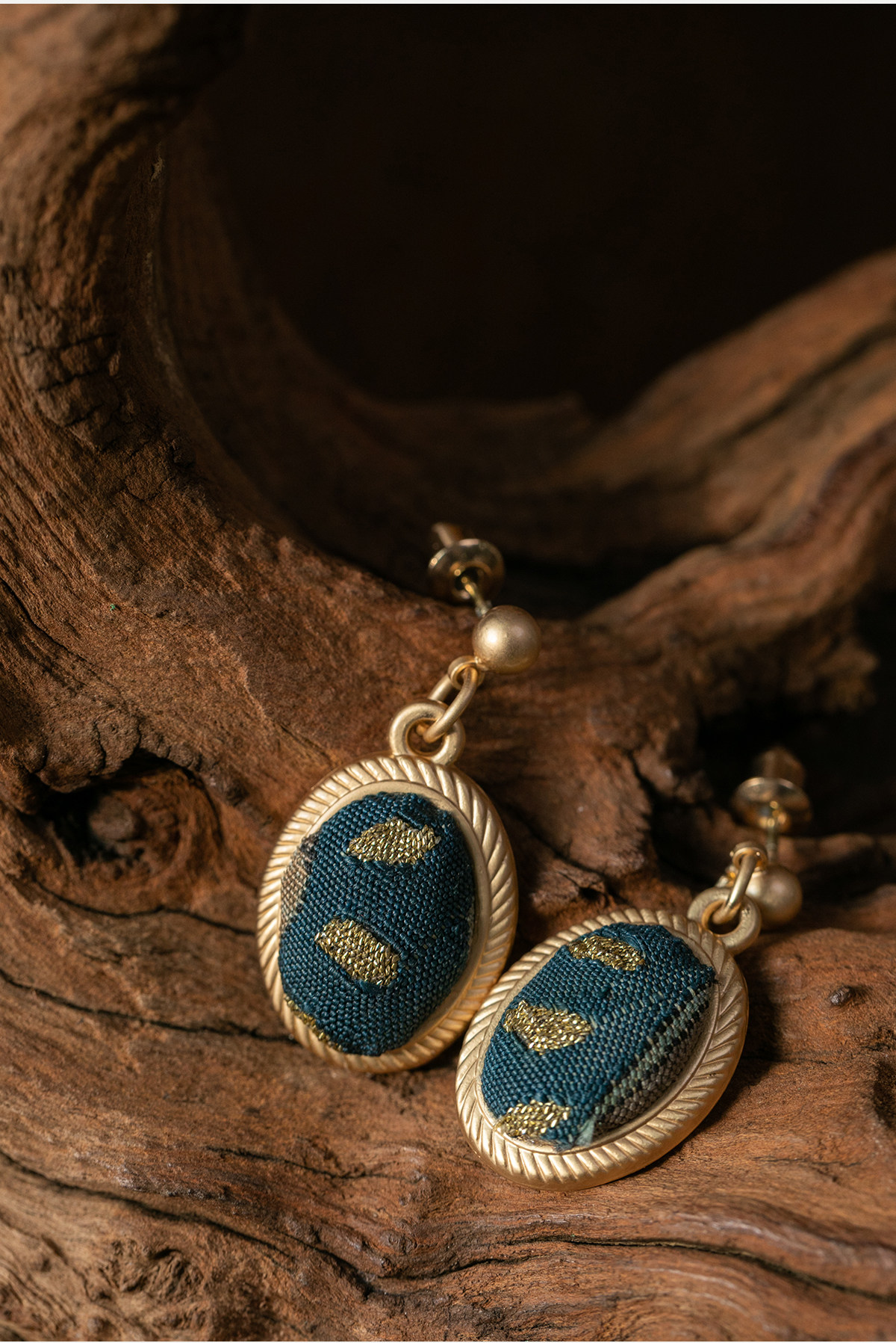 牧衣游缂丝手艺雕镂肌理东方复古椭圆耳环 柳吟【不支持会员折】