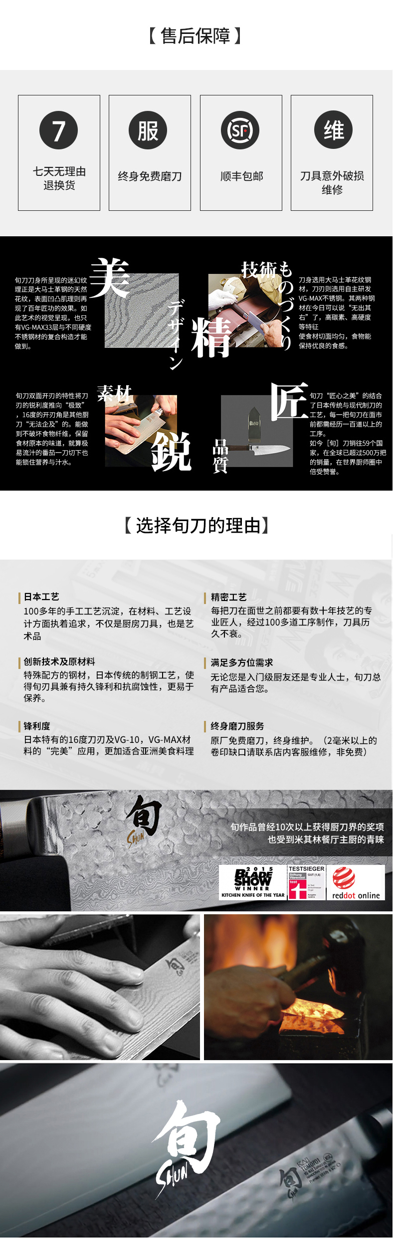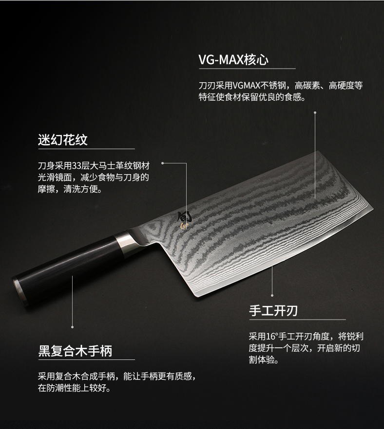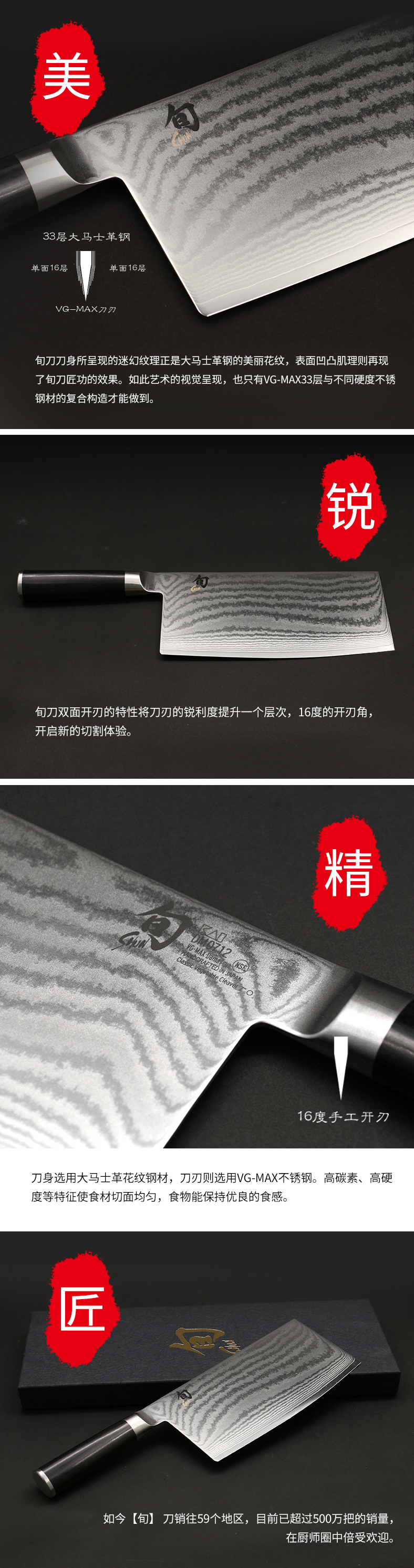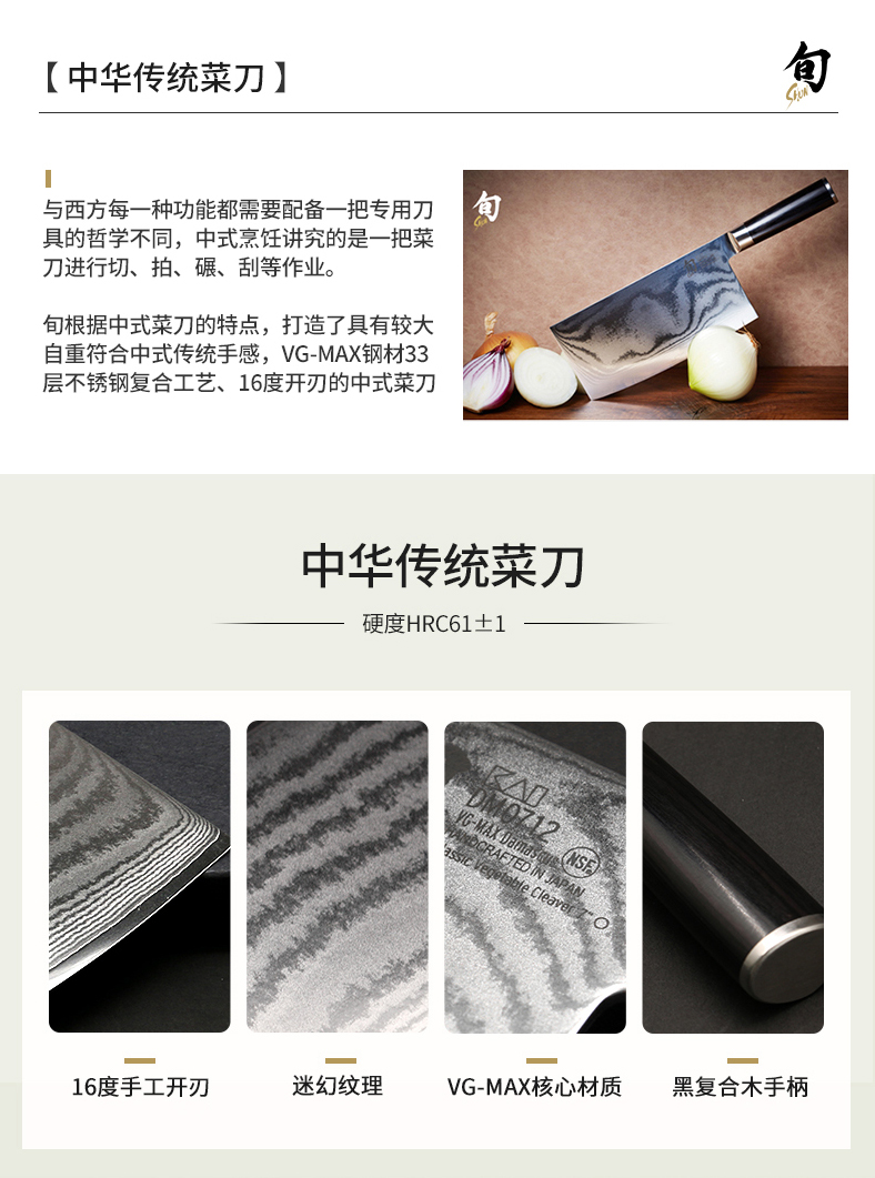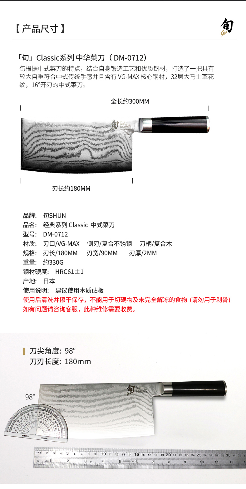 日本进口旬刀经典系列中式菜刀大马士革钢刀厨师刀具专用DM0712