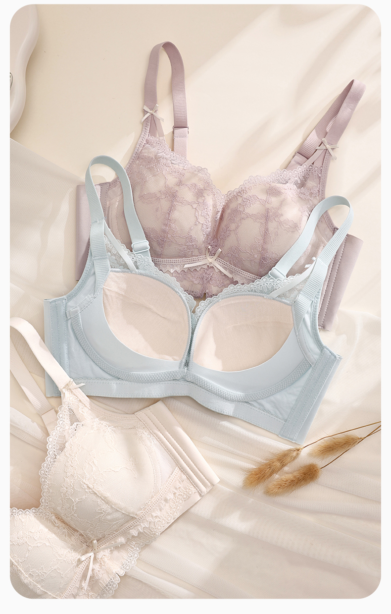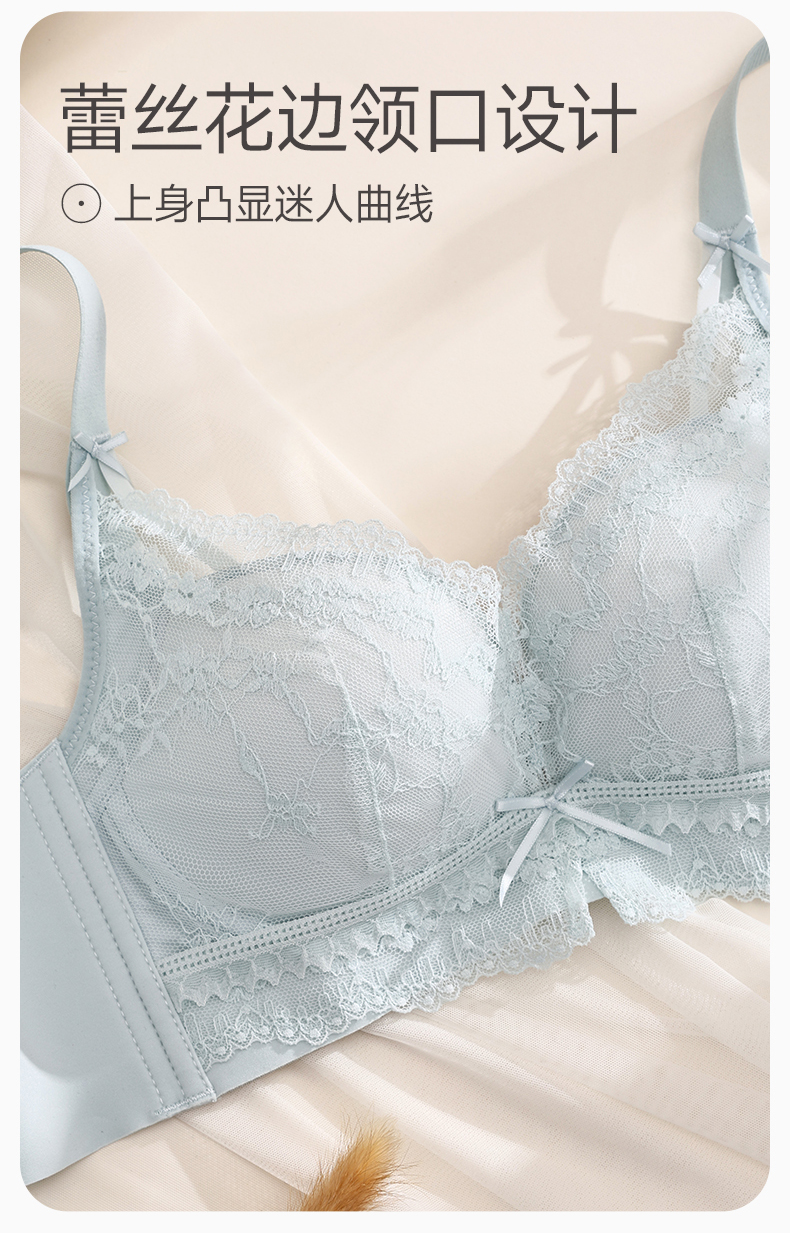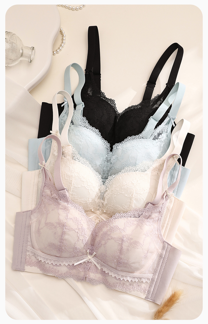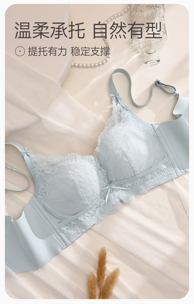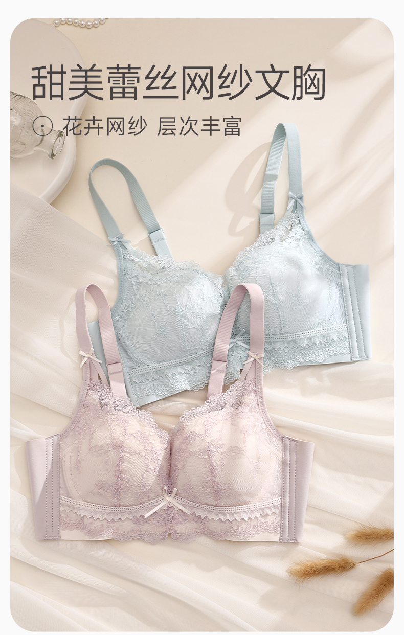 芬腾女士内衣无钢圈性感蕾丝文胸小胸聚拢上托防下垂舒适透气胸罩