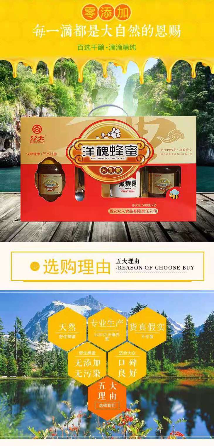 秦岭野生洋槐蜂蜜1000克礼盒装