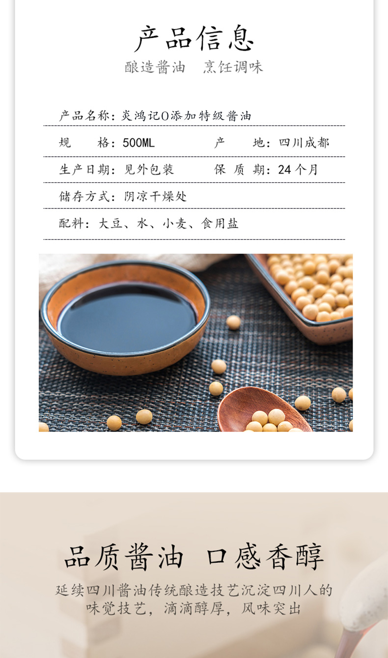 【质农】炎鸿记传统工艺零添加特级酱油500ml