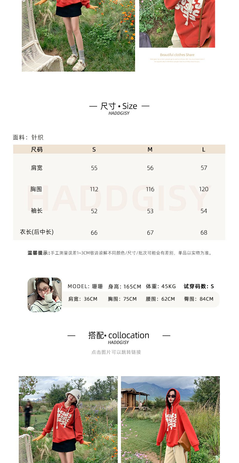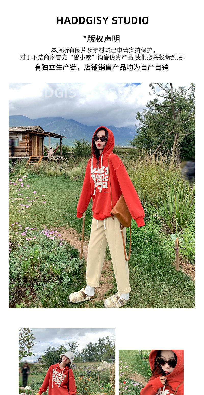 <曾小咸推荐>加绒港风红色字母宽松连帽卫衣 日常189.99/件 立减100 秒杀89.99/件!!