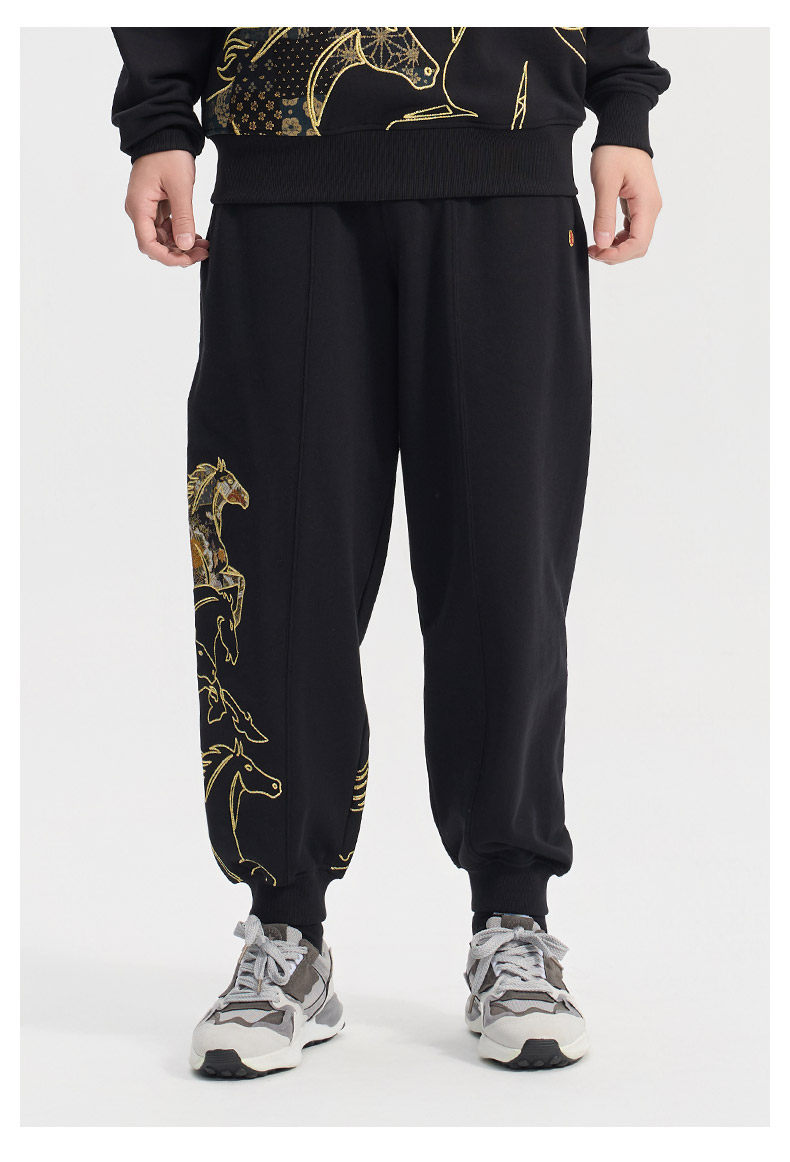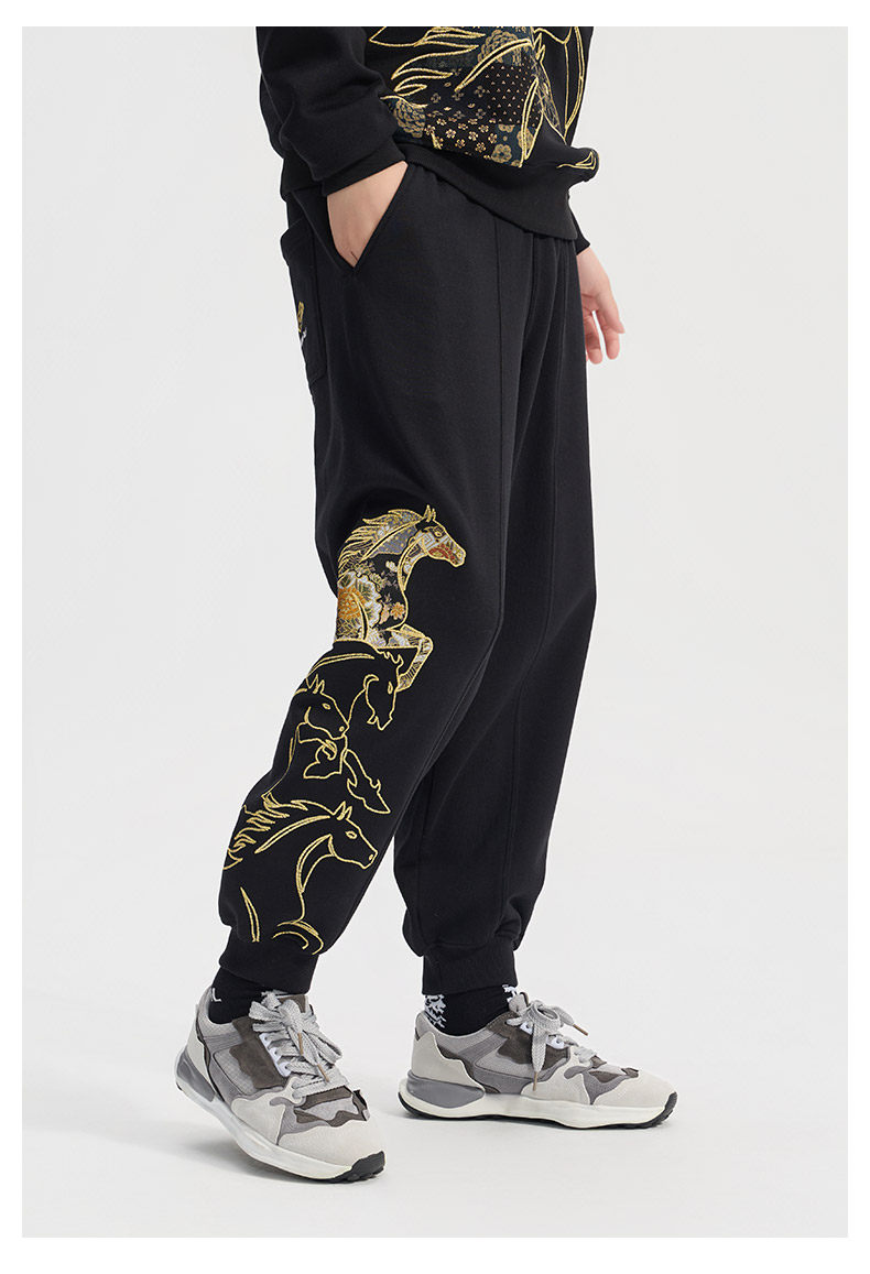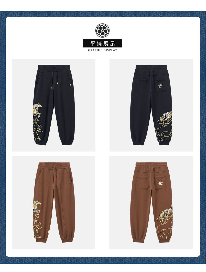ONIARAI/鬼洗26春季新泥棒蓝马剪影拼花布刺绣针织长裤男 N540186