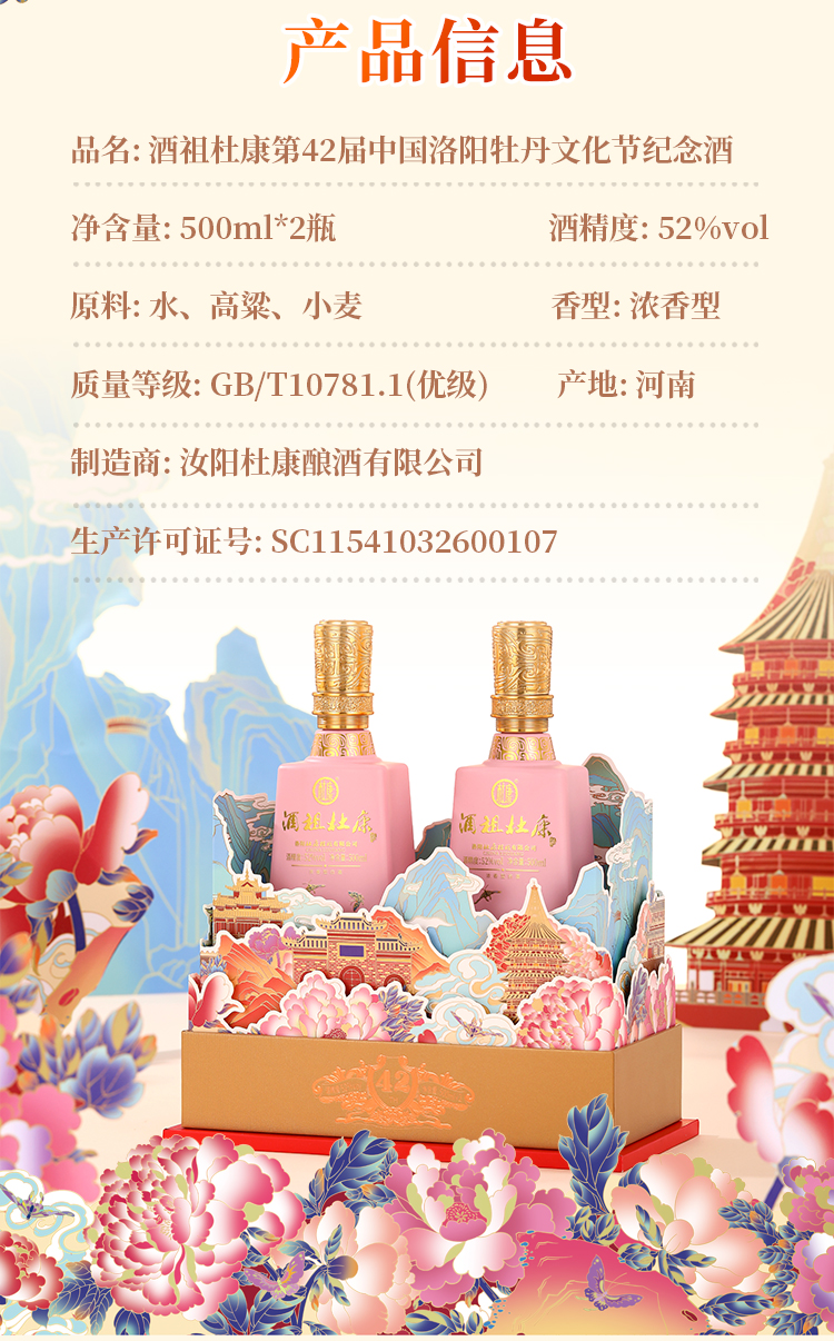 【牡丹节纪念酒】杜康 第42届洛阳牡丹文化节纪念酒礼盒 浓香型52度 2瓶礼盒装