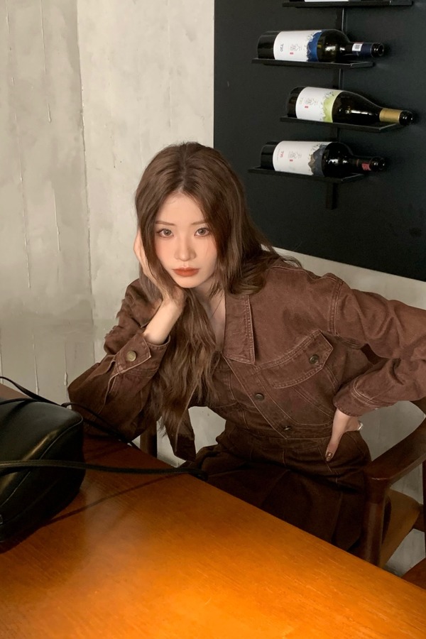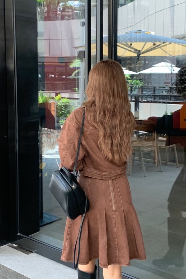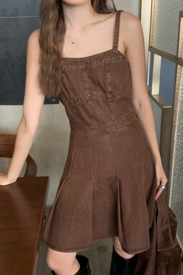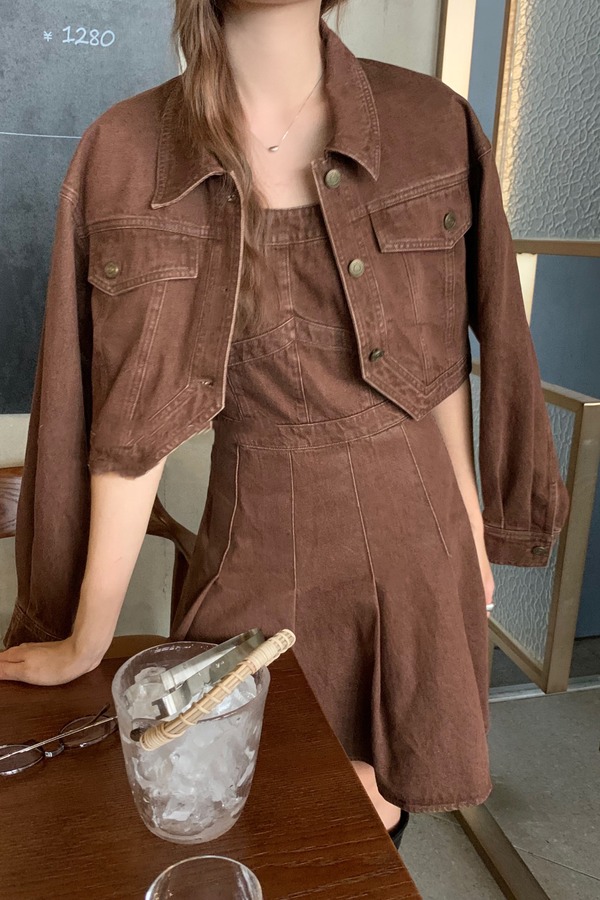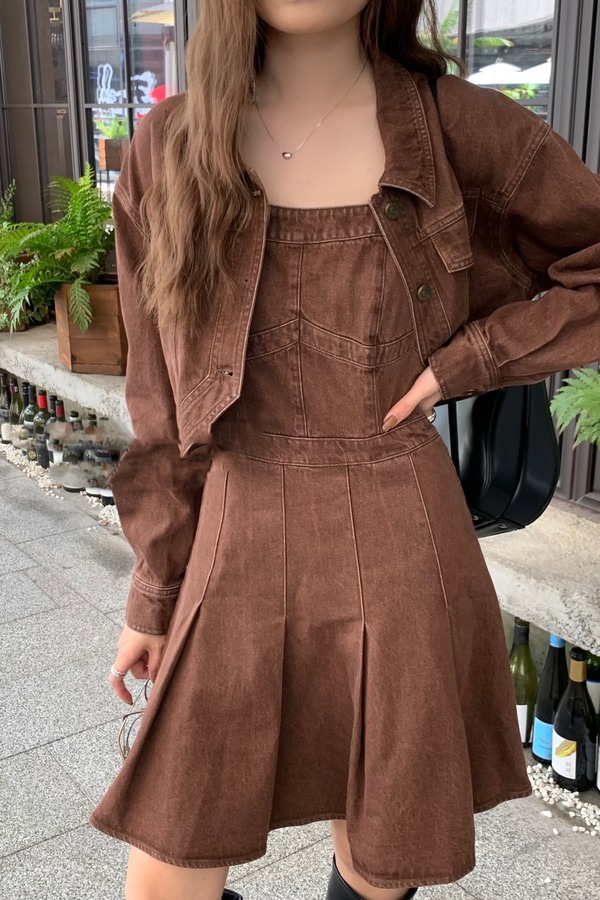 WHO KNOWS 棕红色吊带连衣裙外套套装 19345