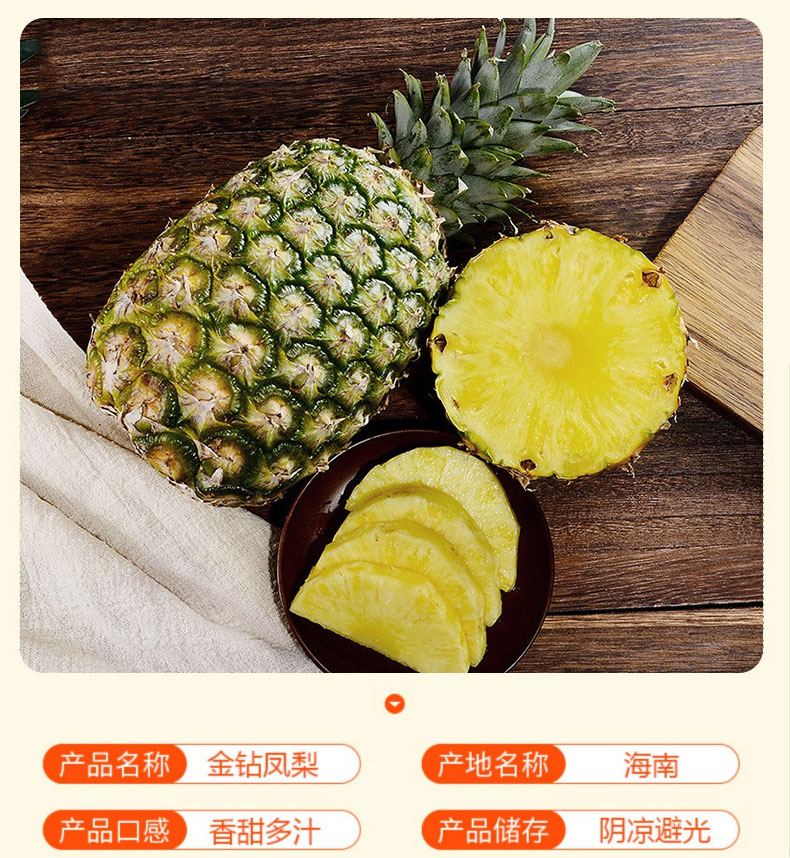 【自营】海南金钻凤梨5斤装含箱(净重4.5-5斤 约2-3个)