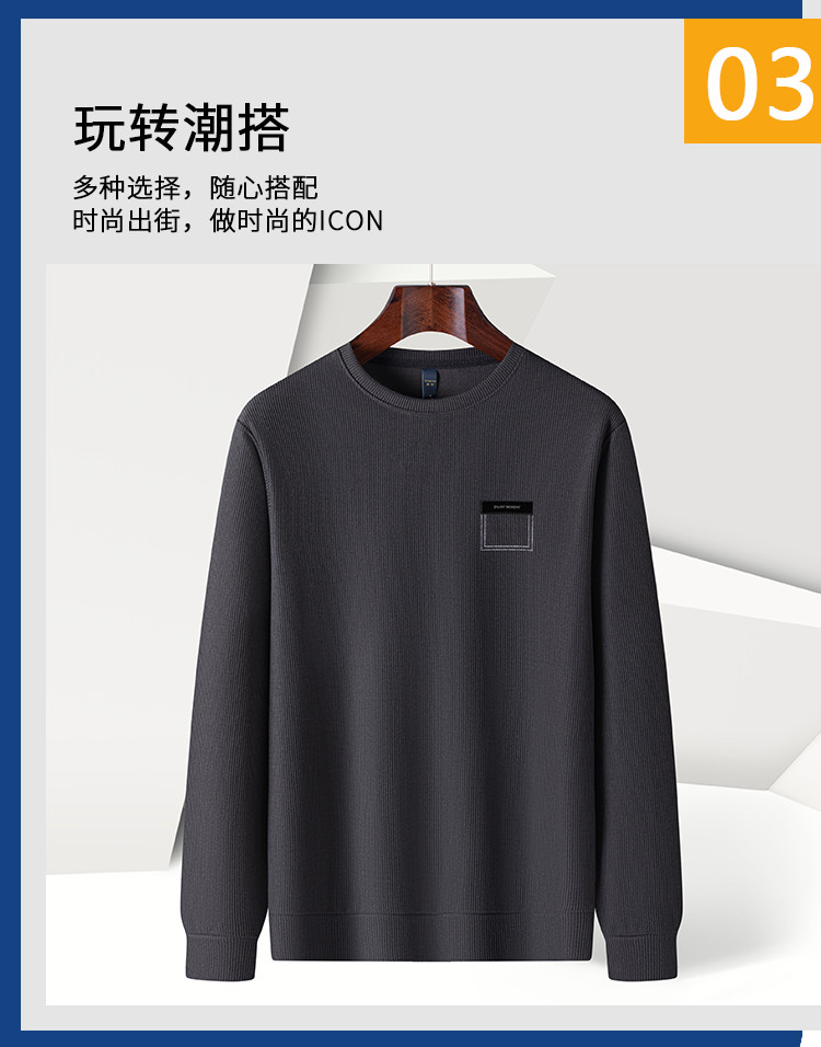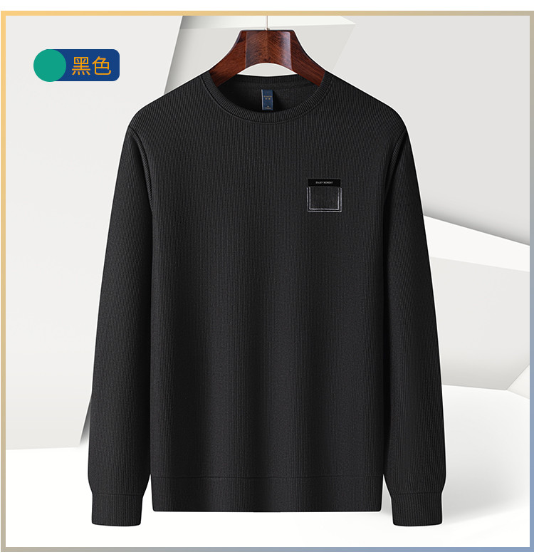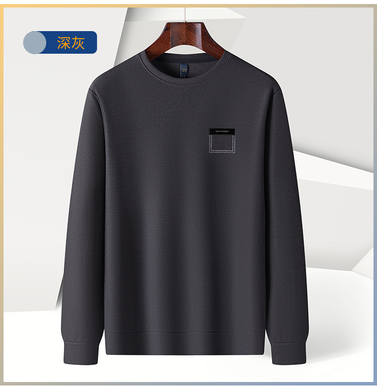 【竖坑条纹 多色任选】罗蒙春秋男士绣花胸标卫衣男时尚休闲百搭卫衣圆领长袖T恤上衣男