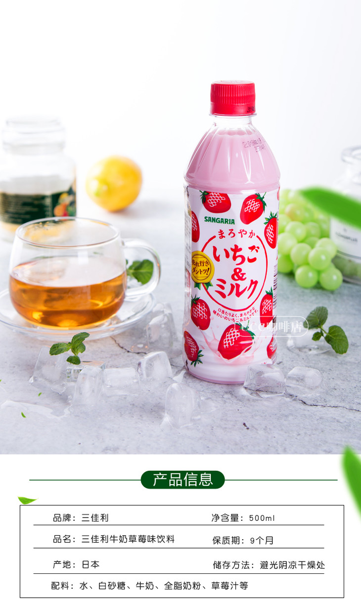 日本进口 SANGARIA三佳丽草莓味牛奶饮料混合果汁饮料500ml (021496)