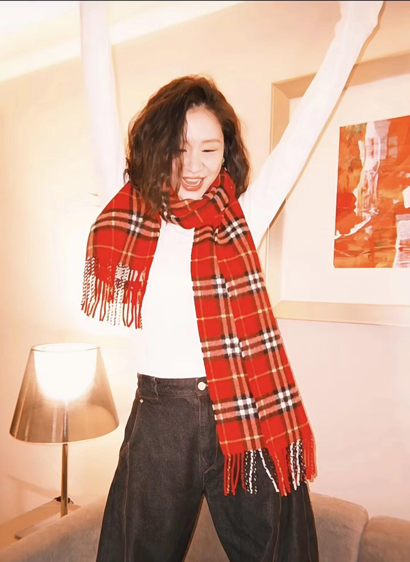 💰49元包邮, 【纯原RL 】 张婧仪同款围巾.中国红含羊毛的格子围巾