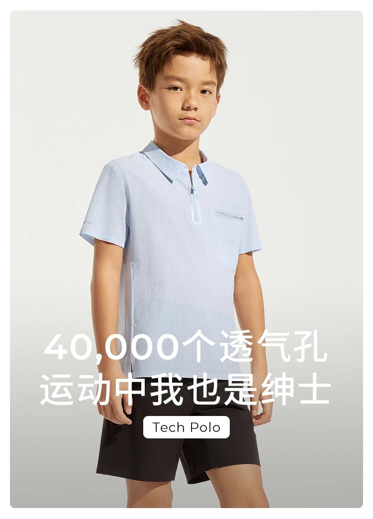 【24年夏新品】moodytiger男童夏新款透气轻薄运动短袖poloAirSupply空气衣42114103