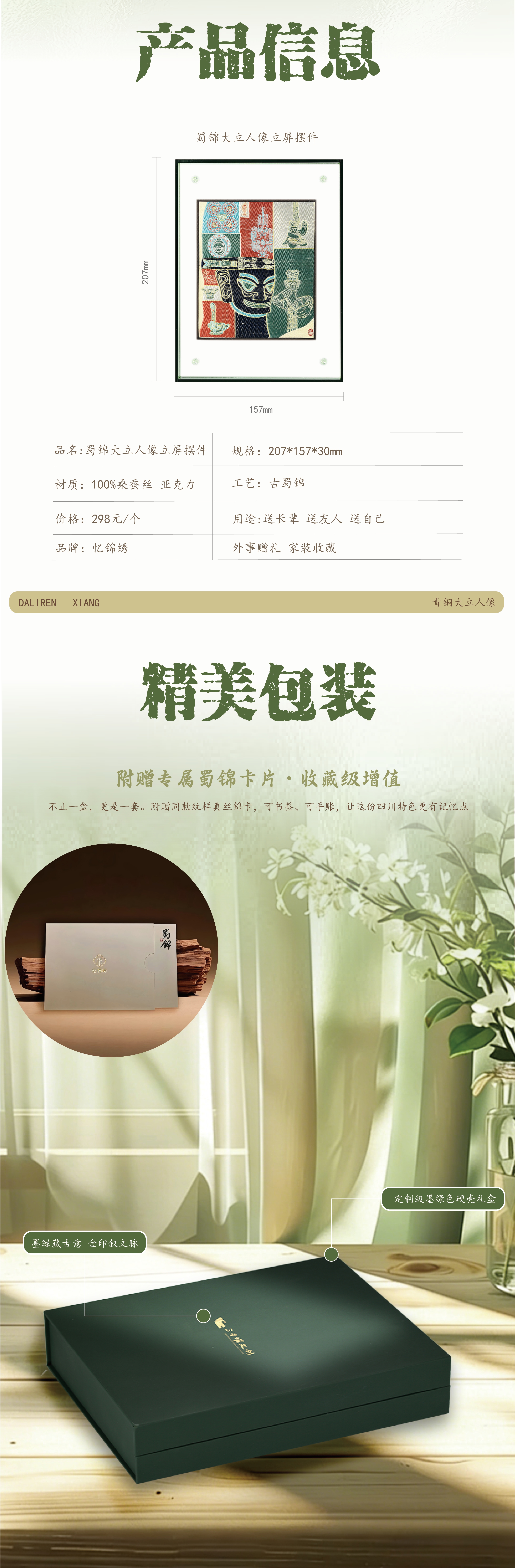 非遗手工工艺蜀绣福寿红桃双熊猫(如意框)