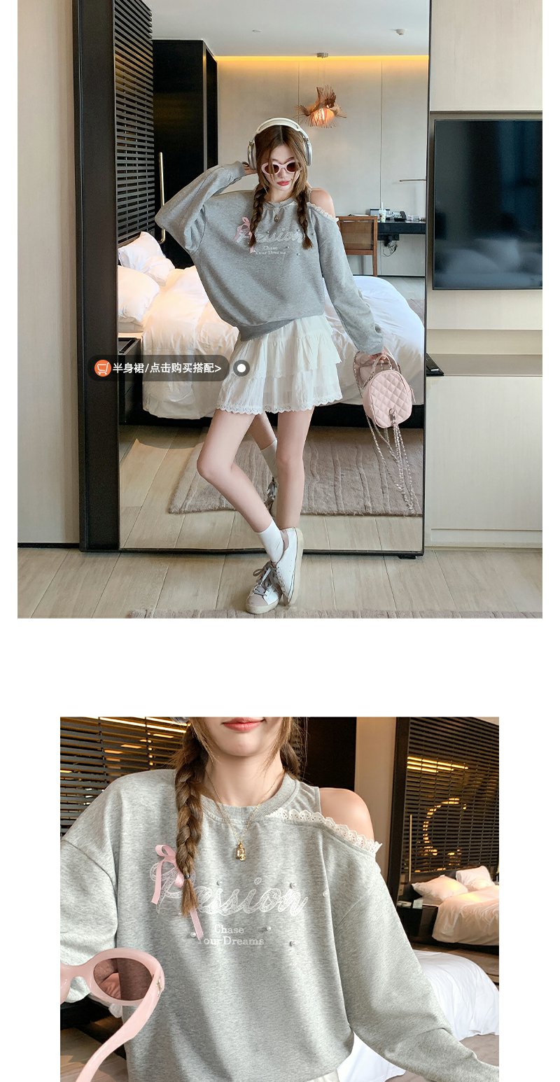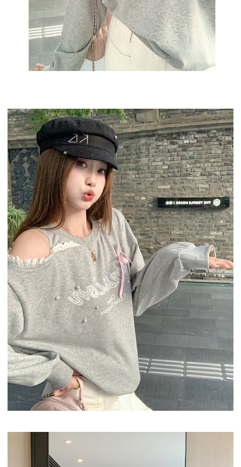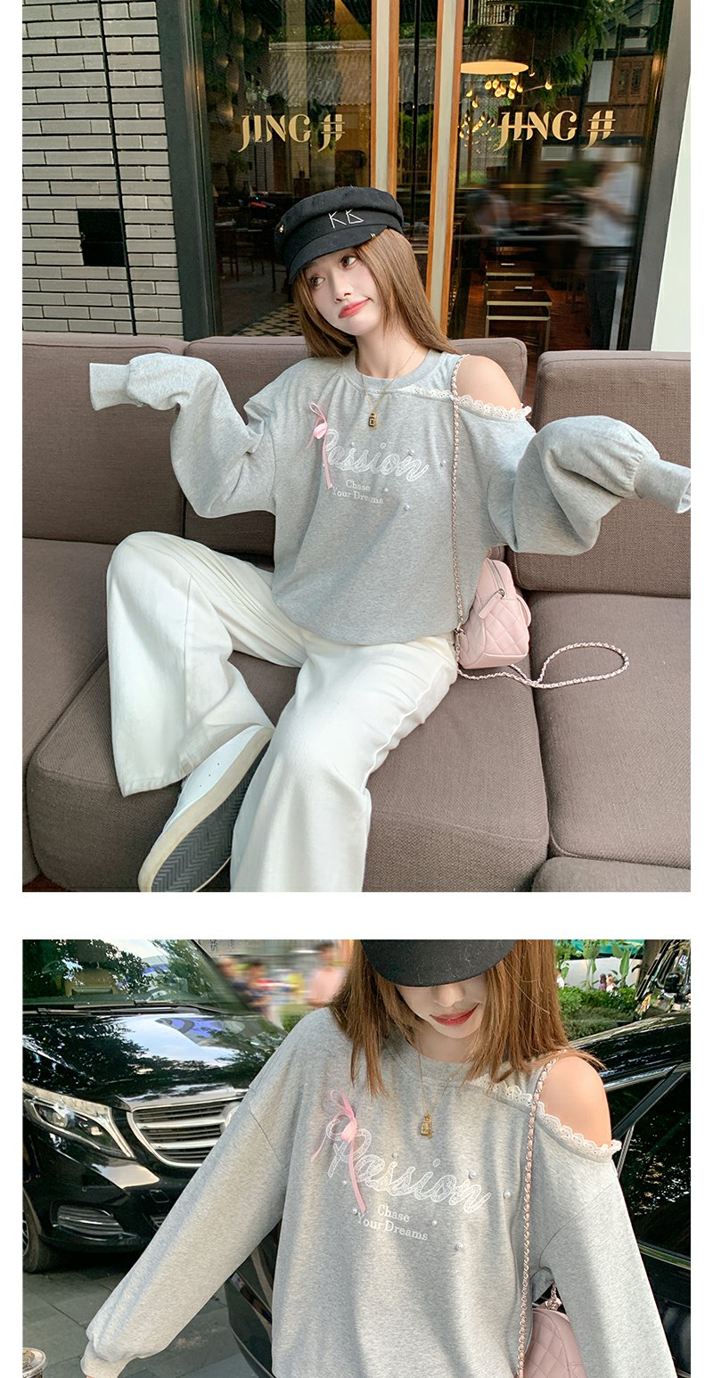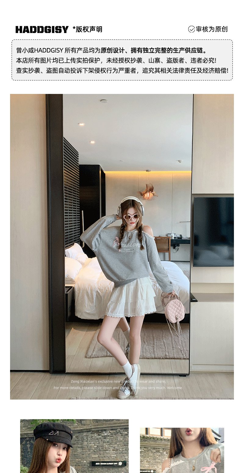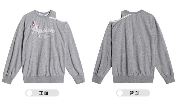 【149元任选2件】现货!蕾丝拼接露肩字母卫衣