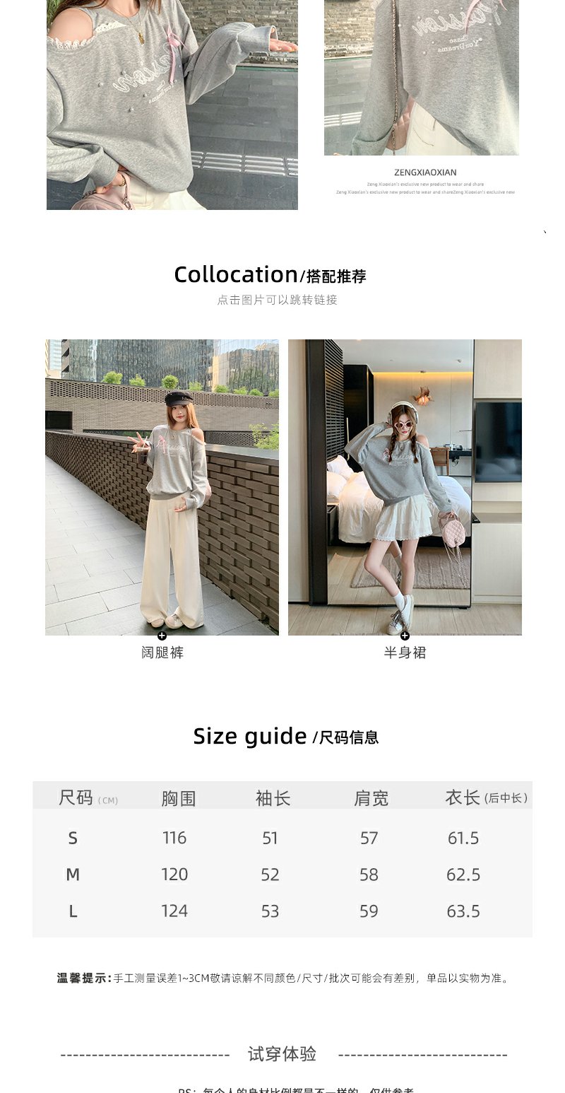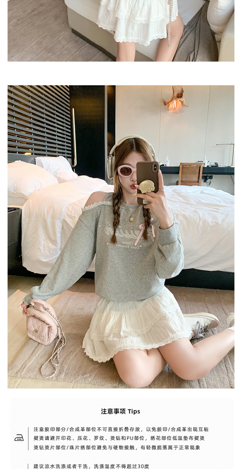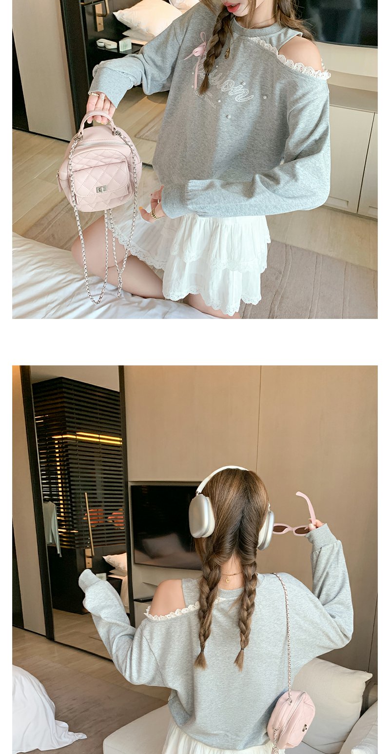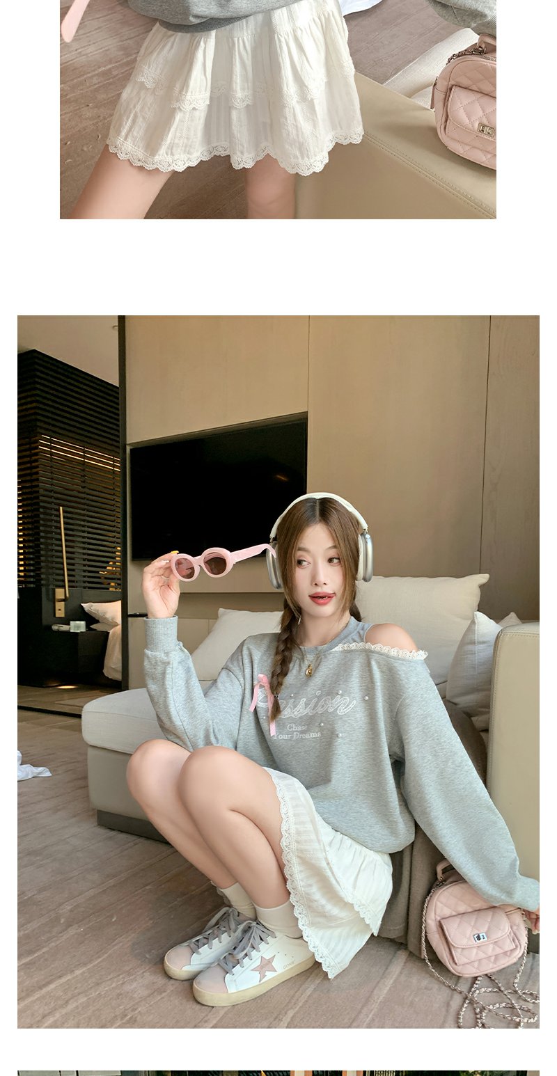 【149元任选2件】现货!蕾丝拼接露肩字母卫衣