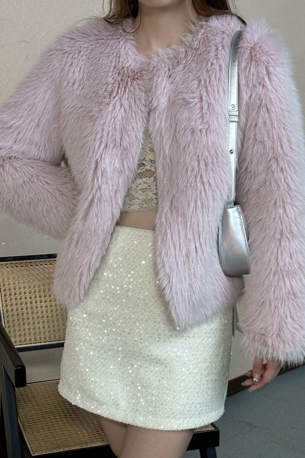 ANSUABEL 粉色毛绒气质短款皮草外套 21303
