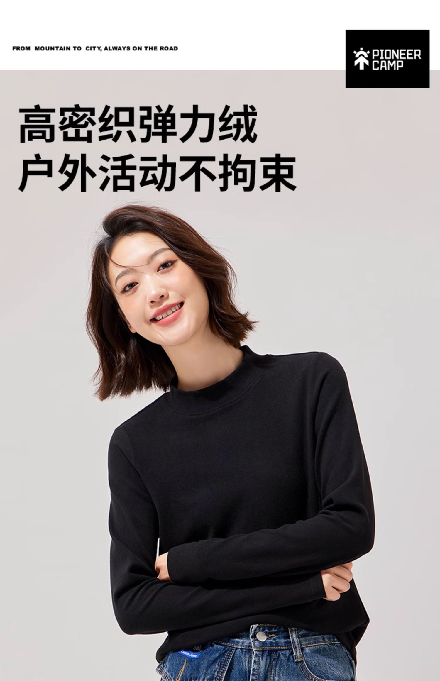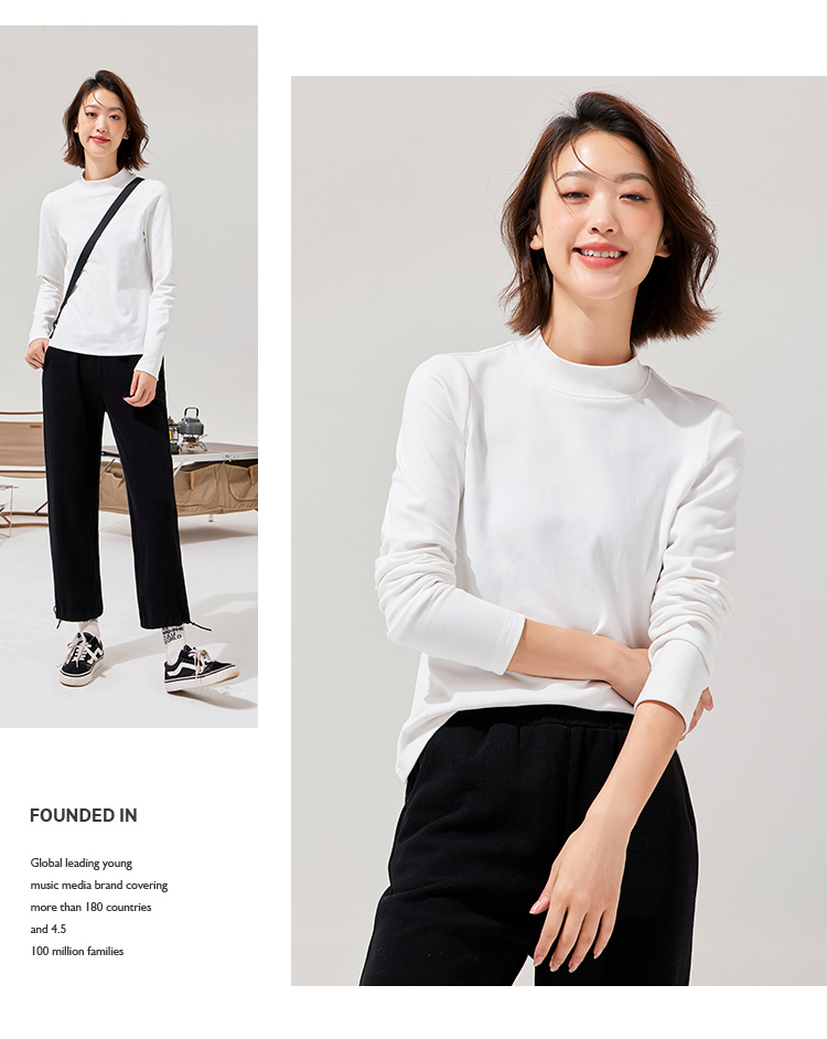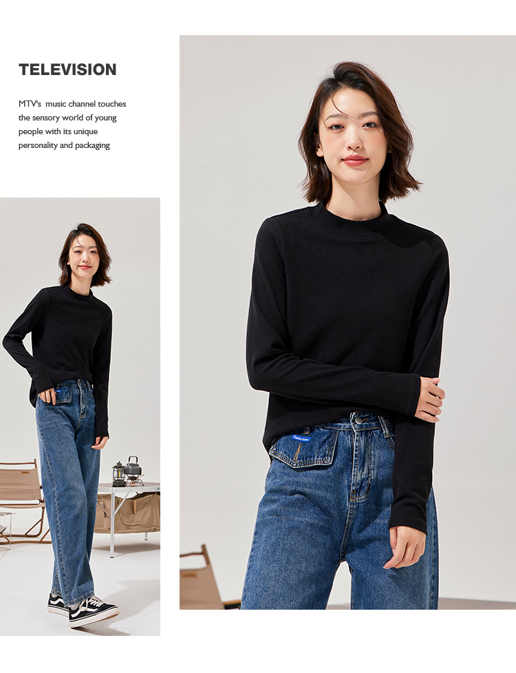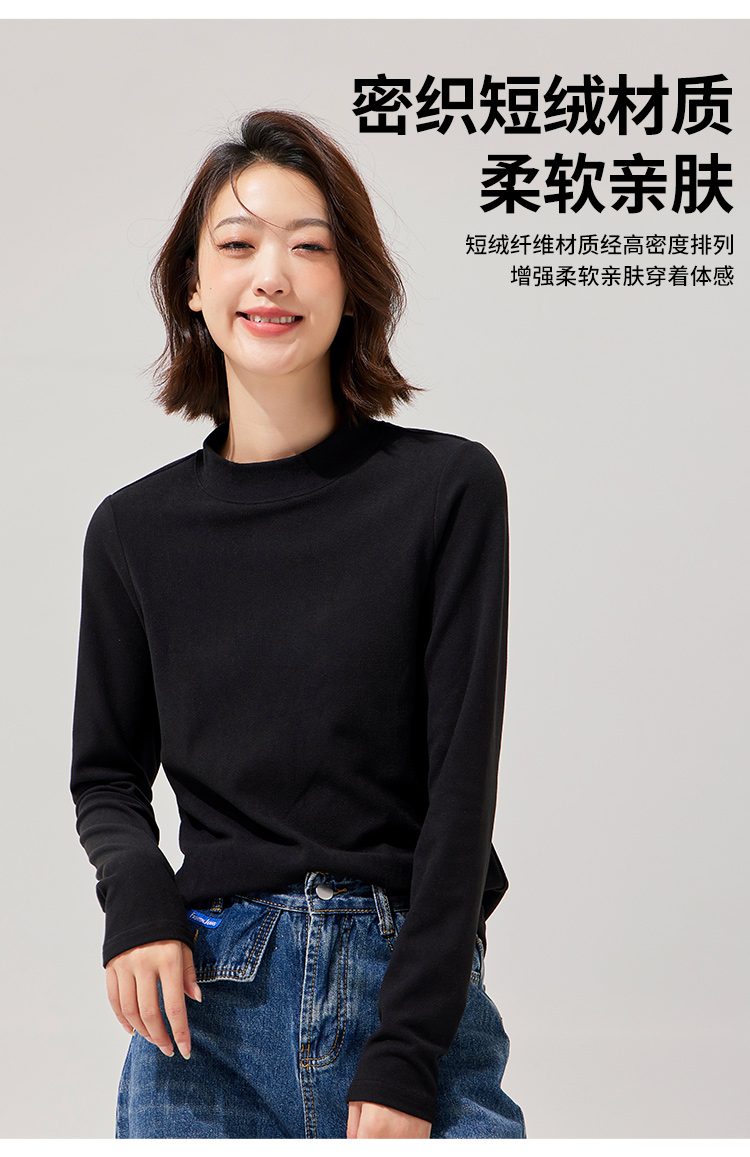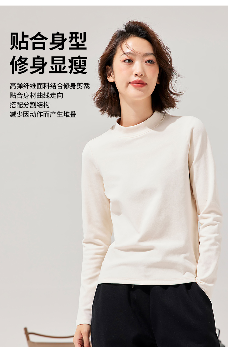 拓路者秋冬圆领打底衫女冬长袖磨毛t恤加绒摇粒绒圆领内搭T恤