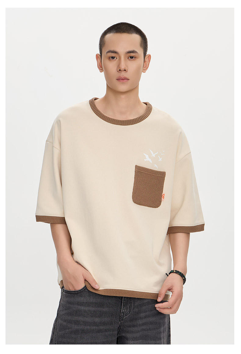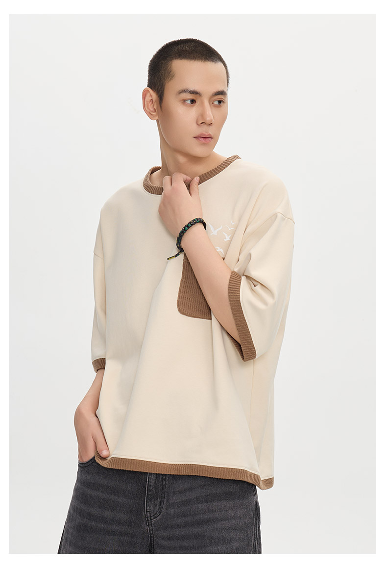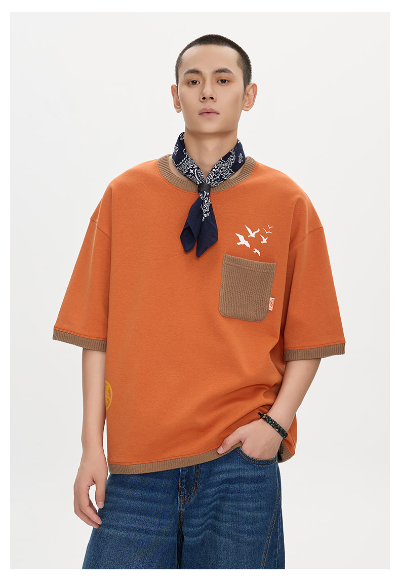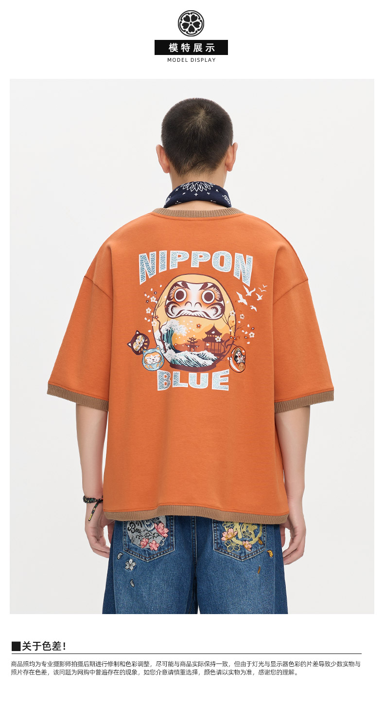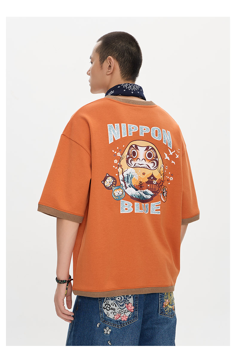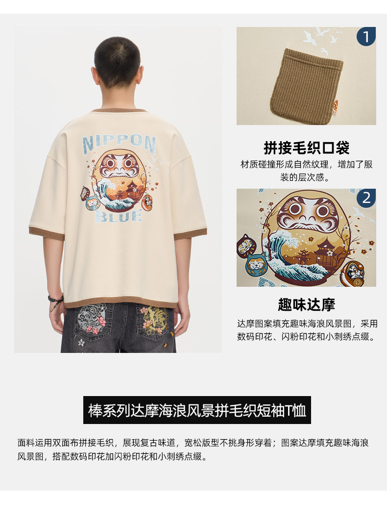 ONIARAI/鬼洗25秋季新品棒系列达摩海浪风景拼毛织短袖T N840279