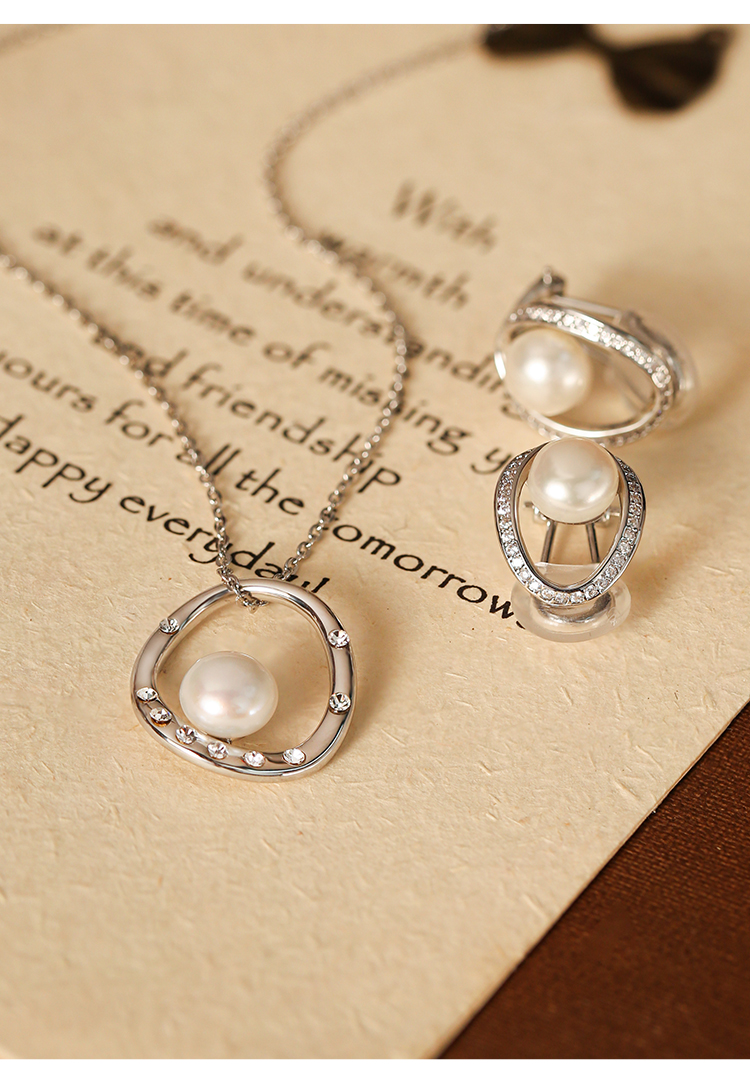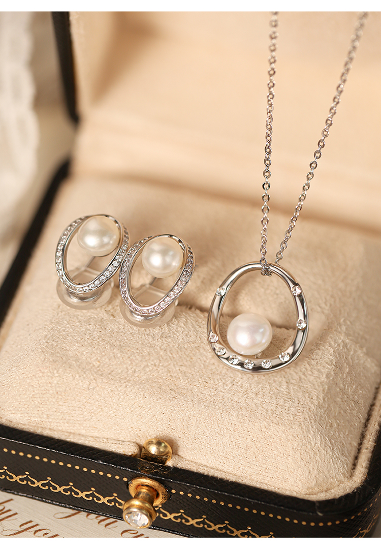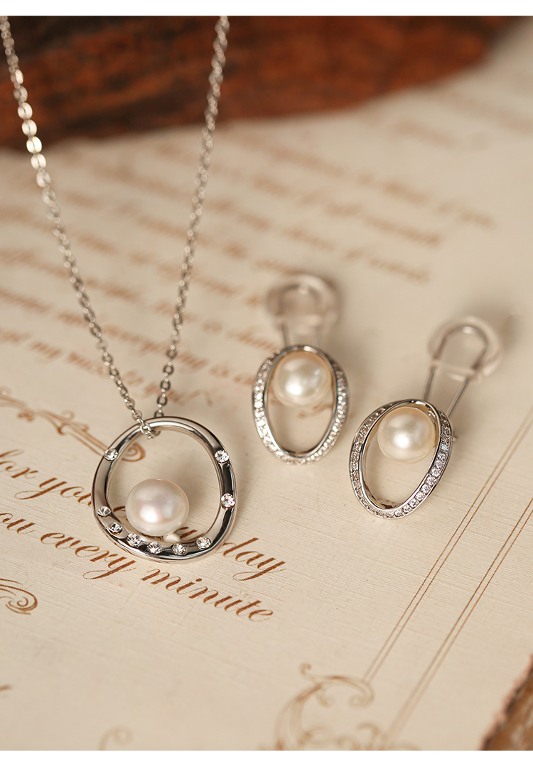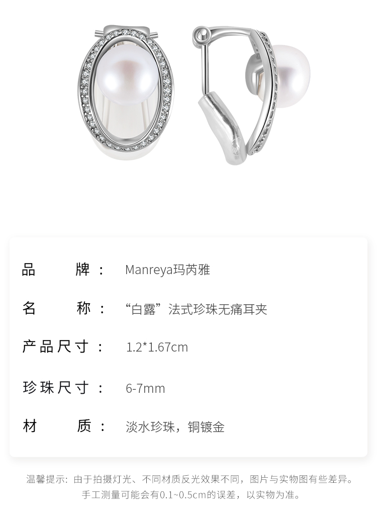 MANREYA玛芮雅“白露”法式珍珠无痛耳夹项链套装