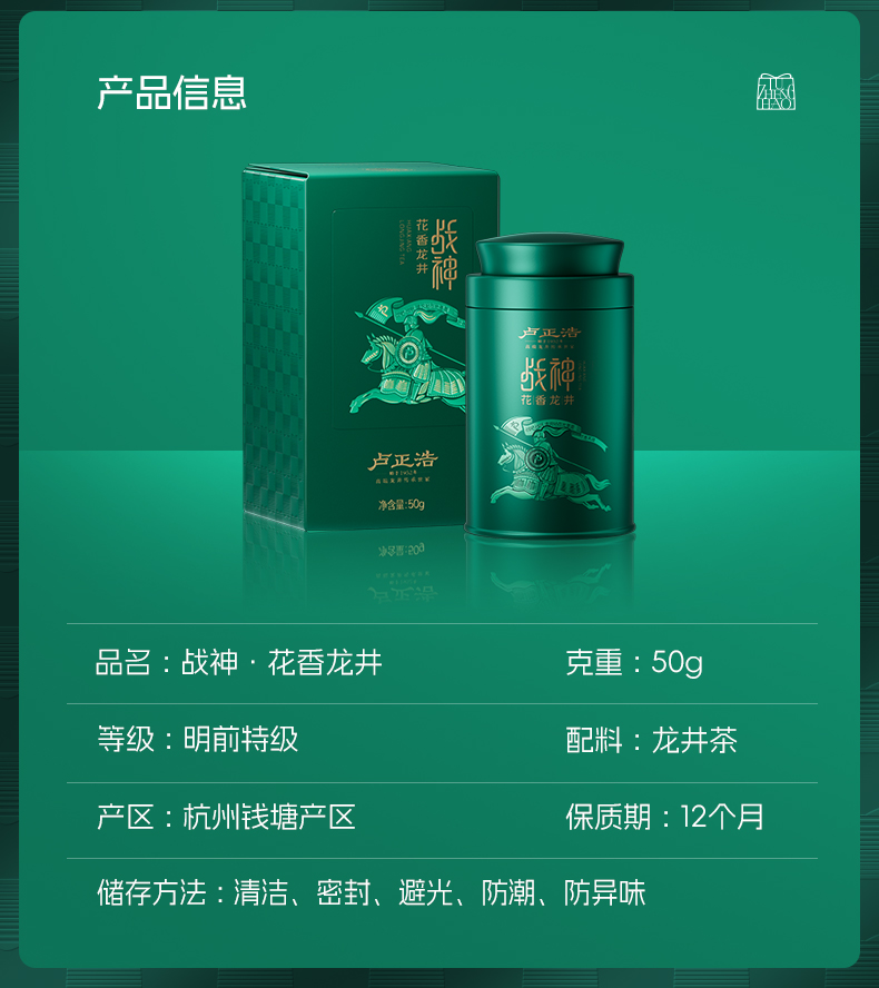 【2026年新茶上市】卢正浩明前特级头采花香战神花香龙井50克罐绿茶茶叶 春茶