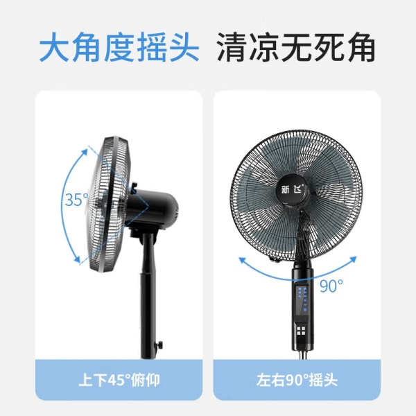 新飞(Frestec)电风扇家用落地扇遥控定时静音风扇办公室卧室客厅学生宿舍立式电扇大风力五叶扇_机械塑叶款