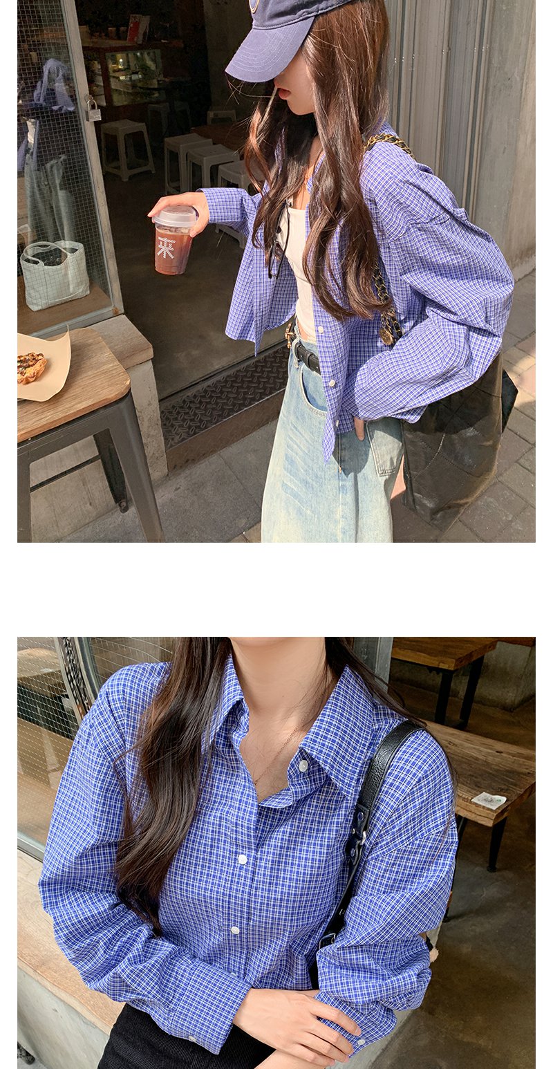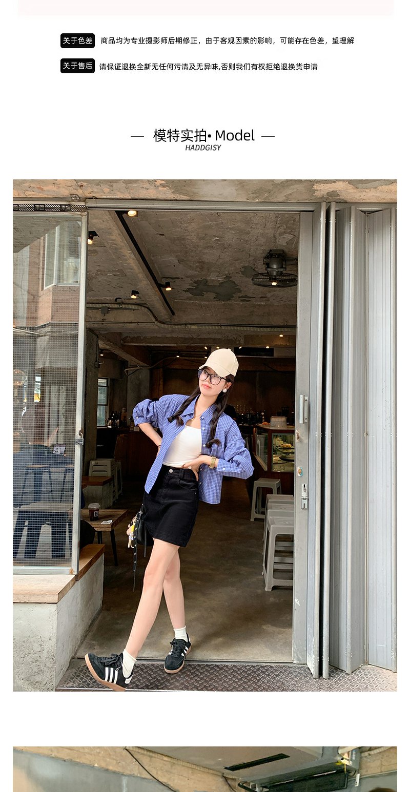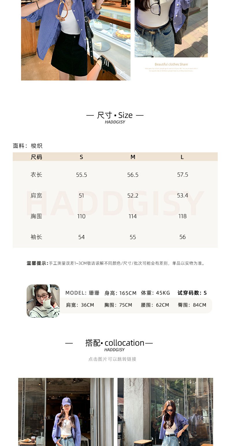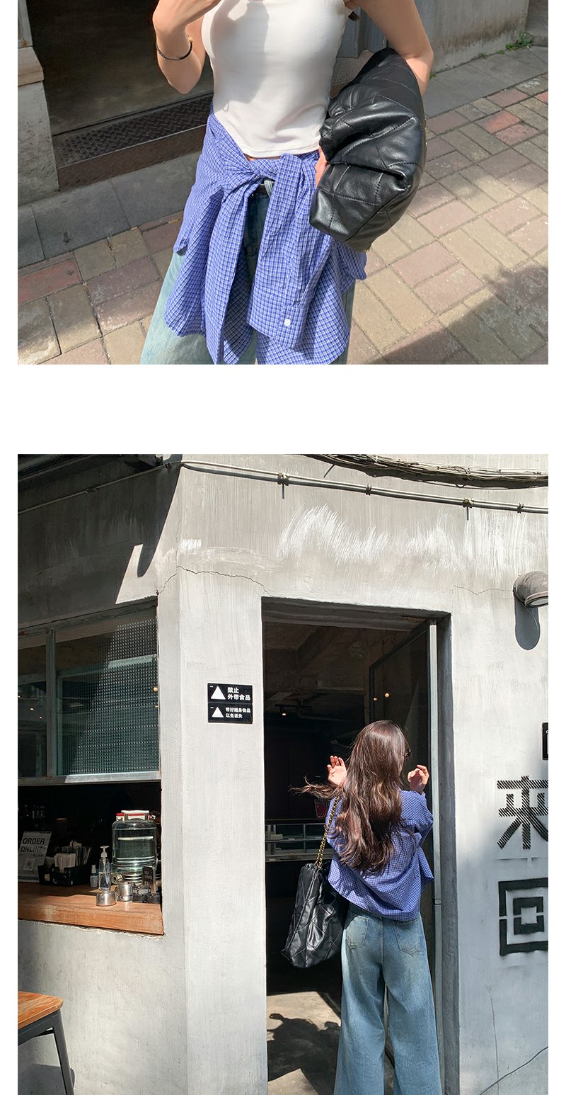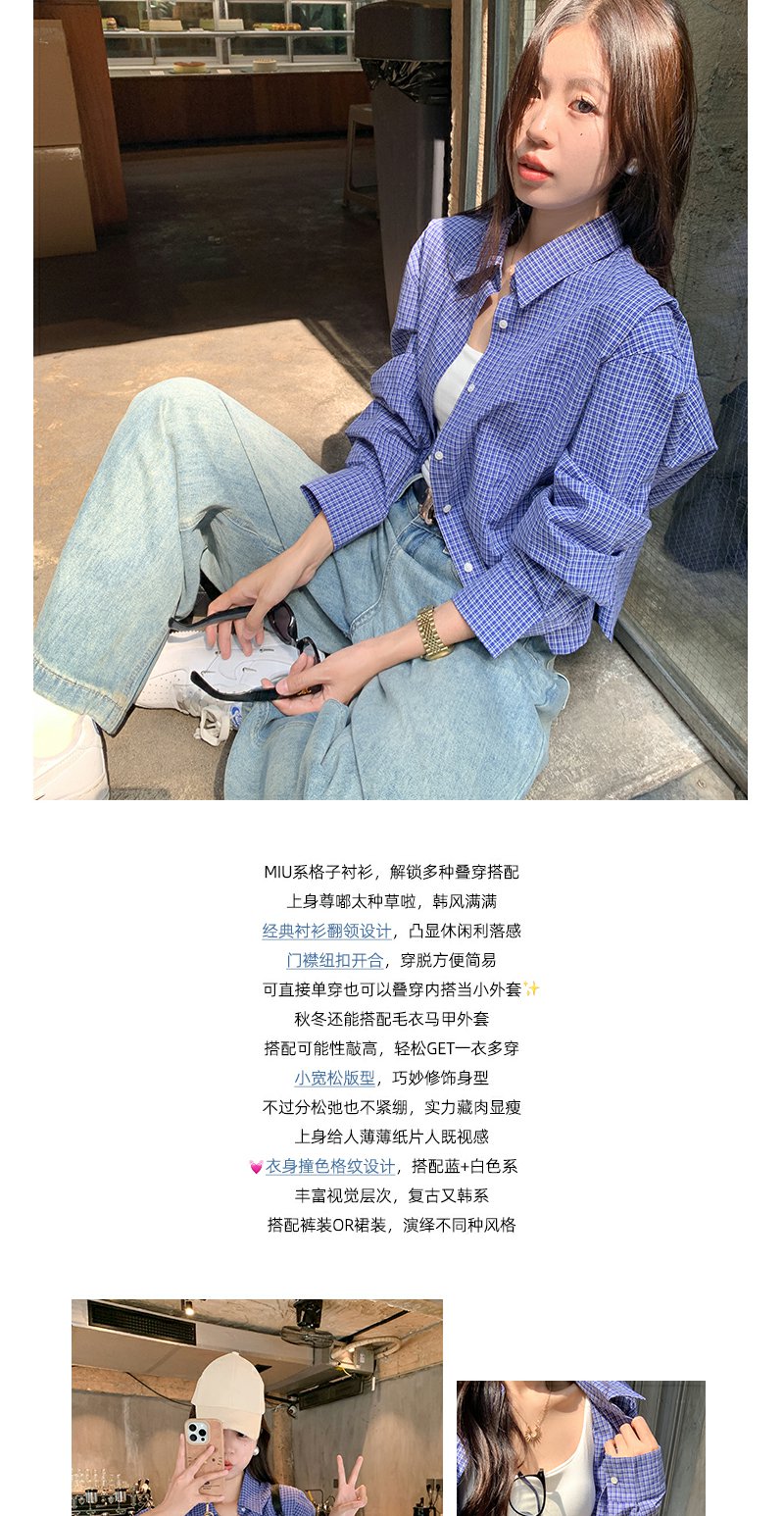 <曾小咸推荐>韩系宽松显瘦蓝色格子衬衫