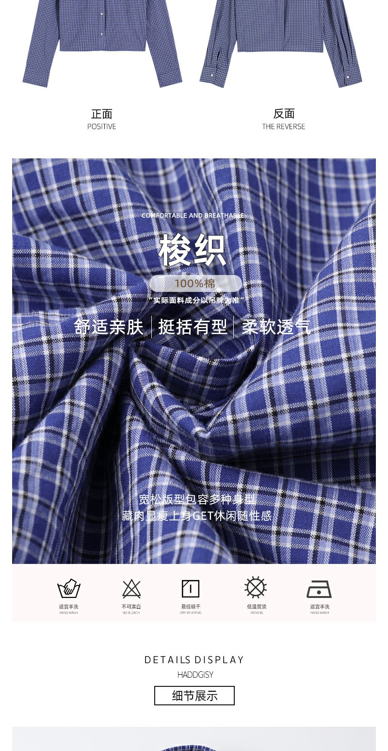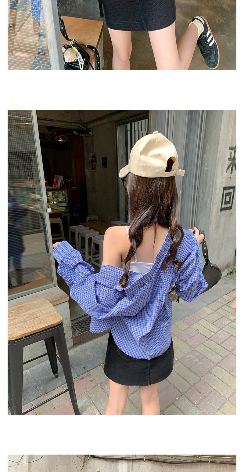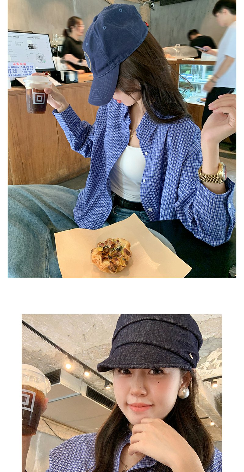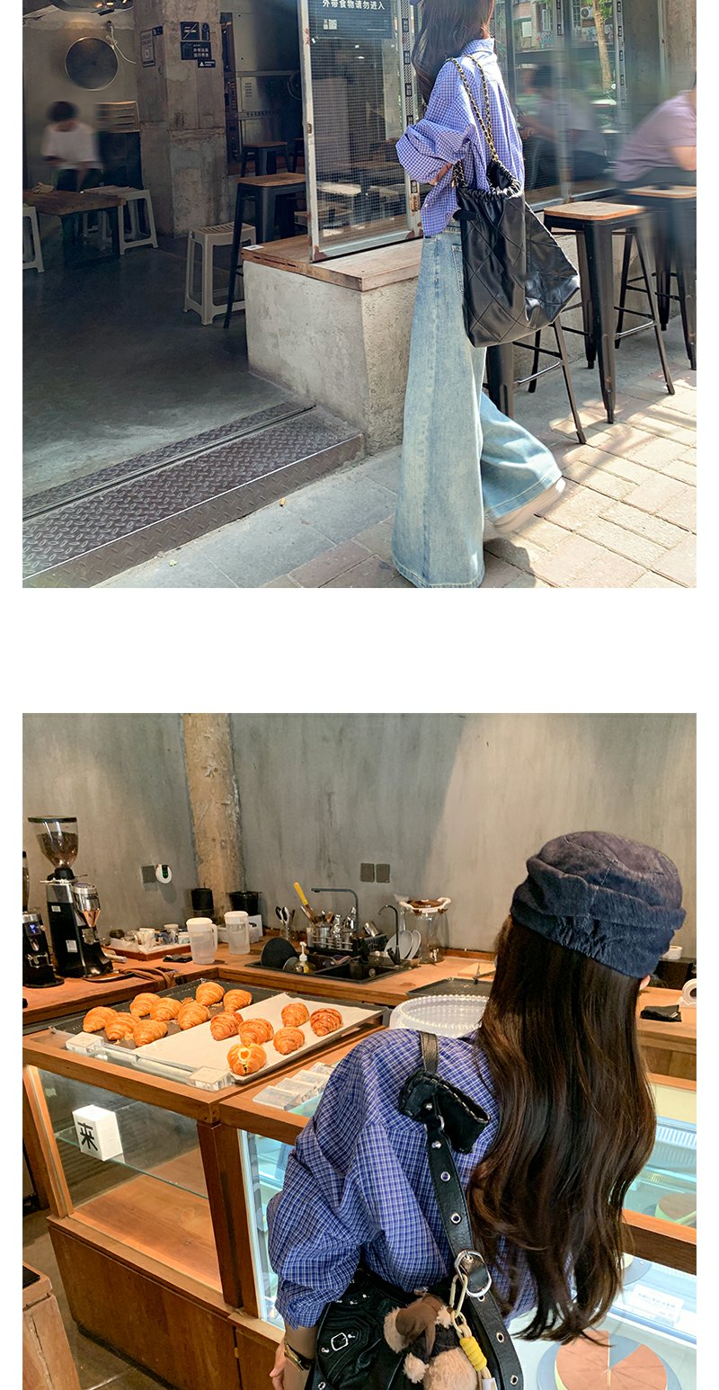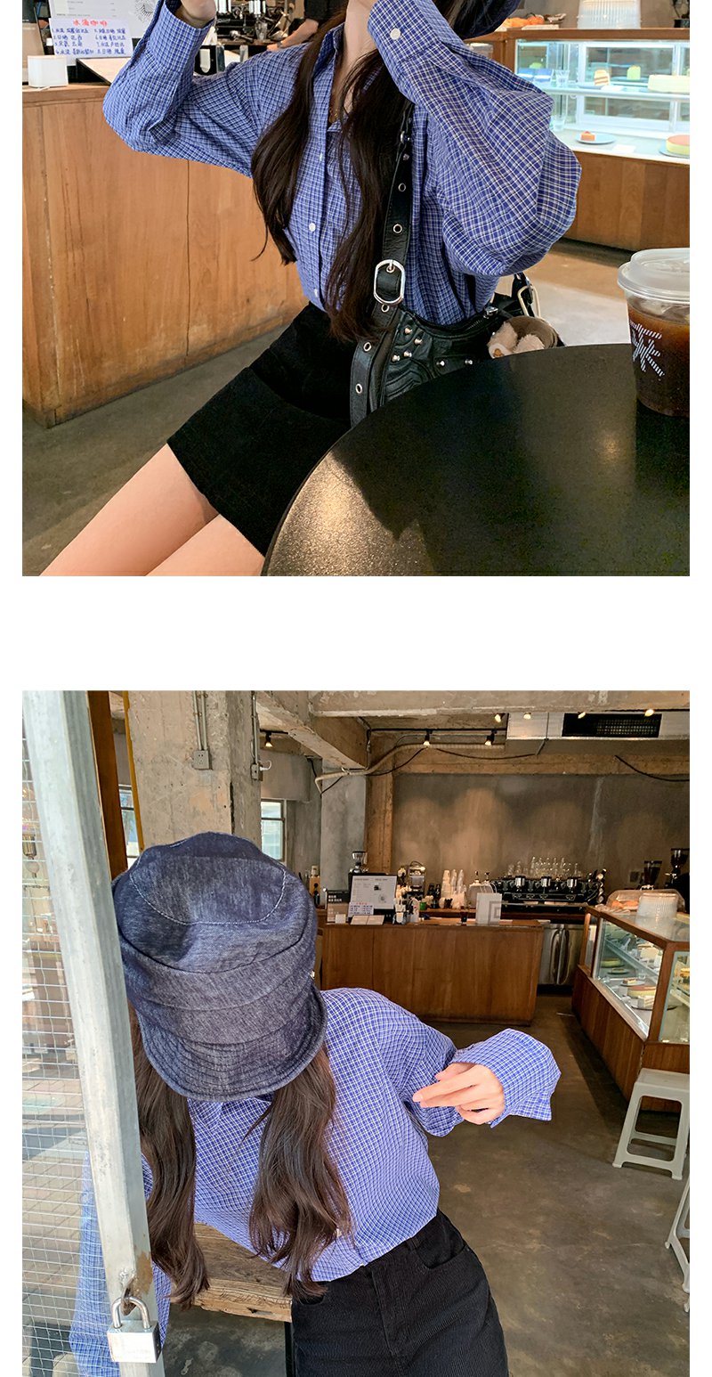 <曾小咸推荐>韩系宽松显瘦蓝色格子衬衫