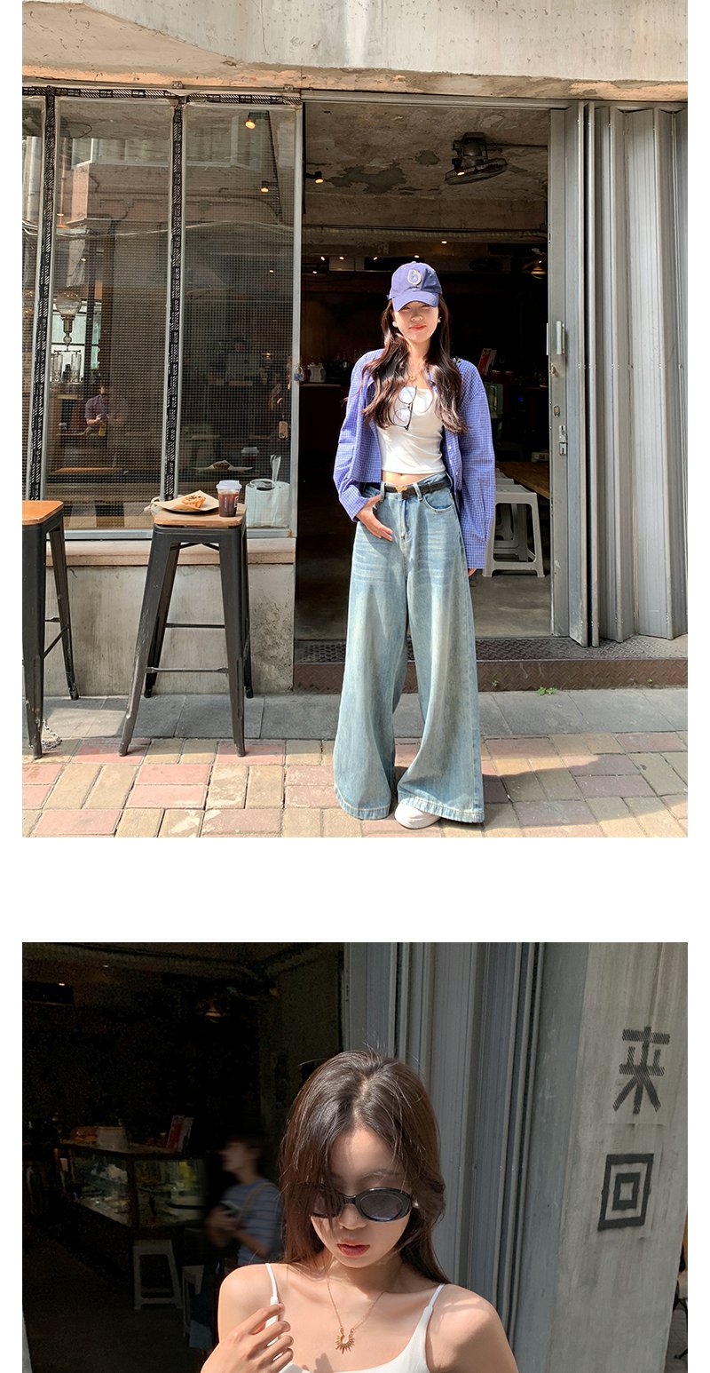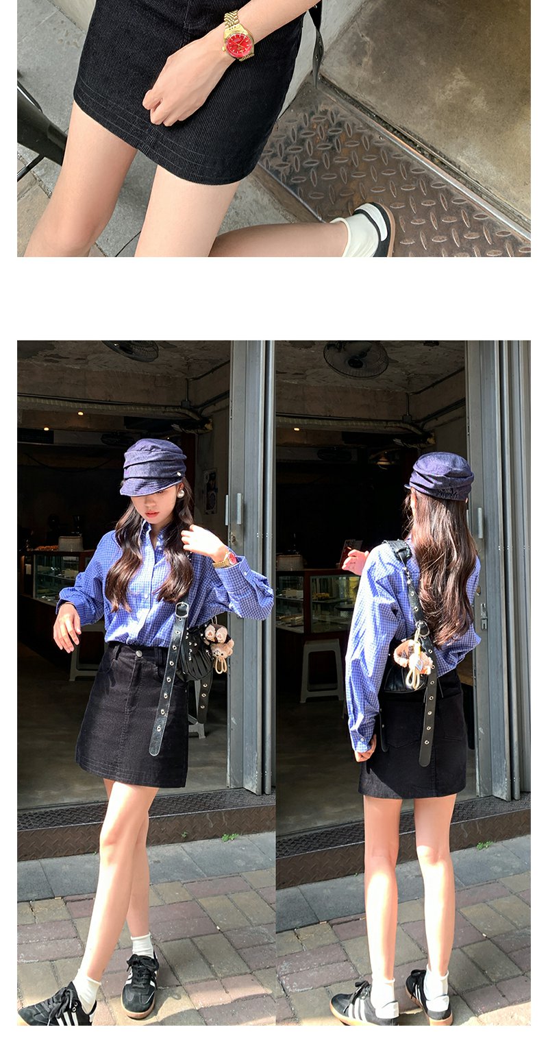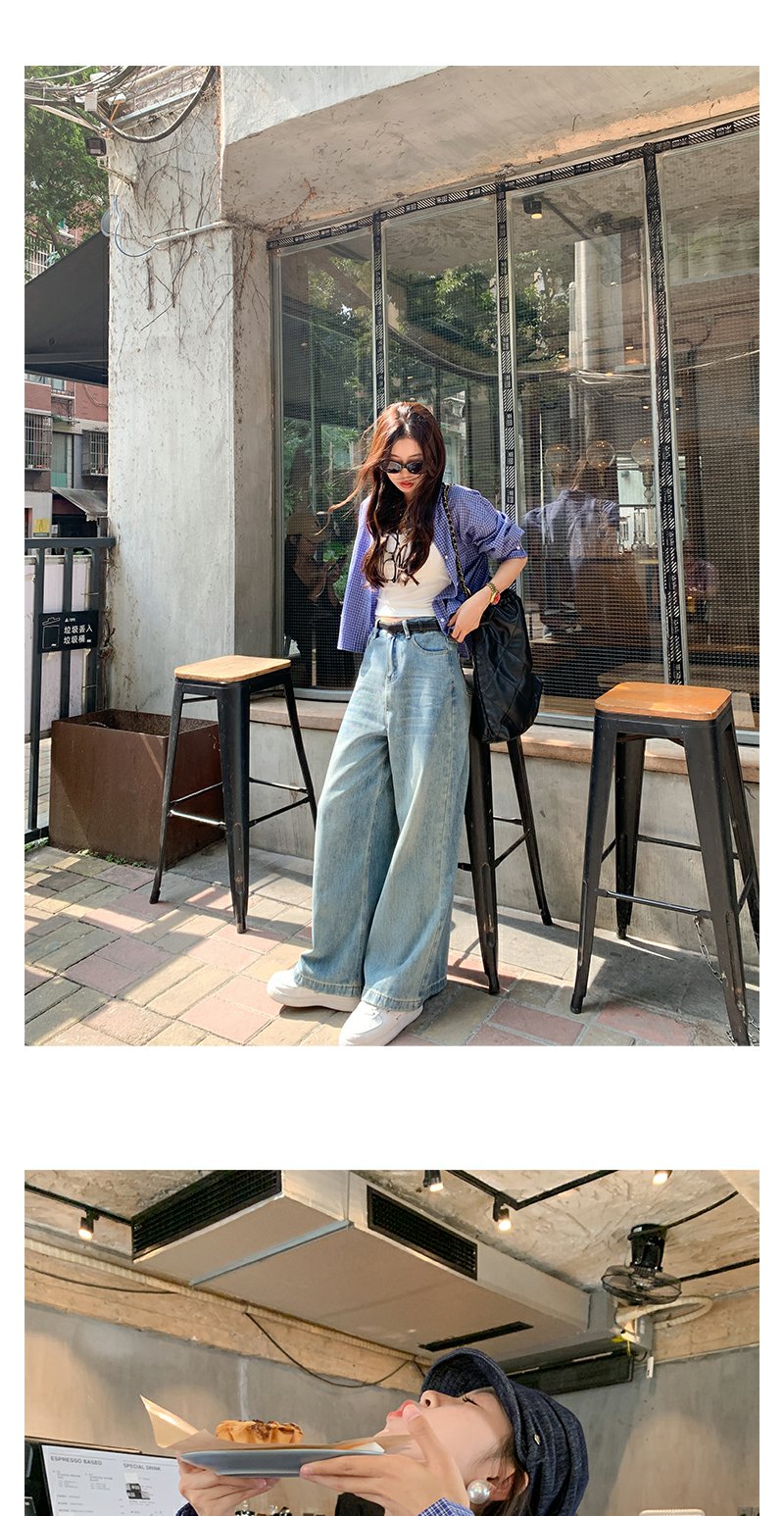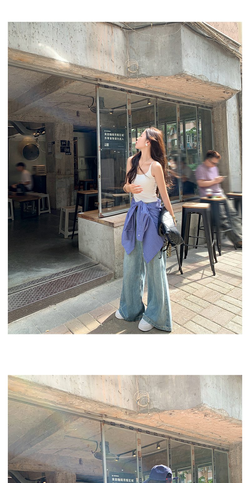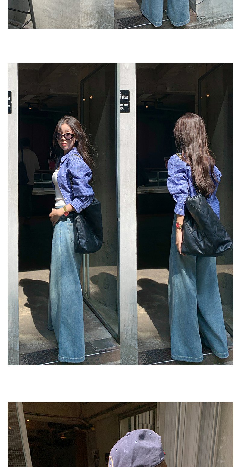 <曾小咸推荐>韩系宽松显瘦蓝色格子衬衫