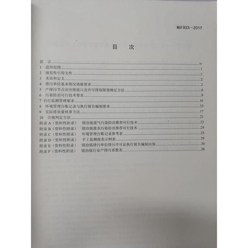 HJ933-2017排污许可证申请与核发技术规范有色金属工业—镁冶炼 环境保护 环境科学 135111665