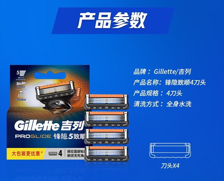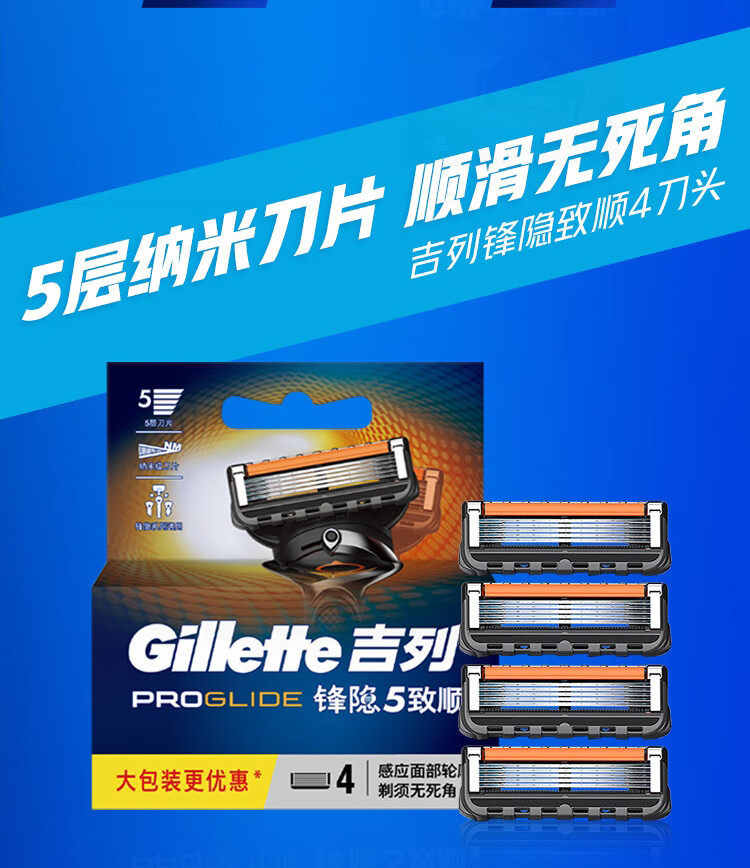 吉列锋隐5致顺刀片替换刀片(4刀头)