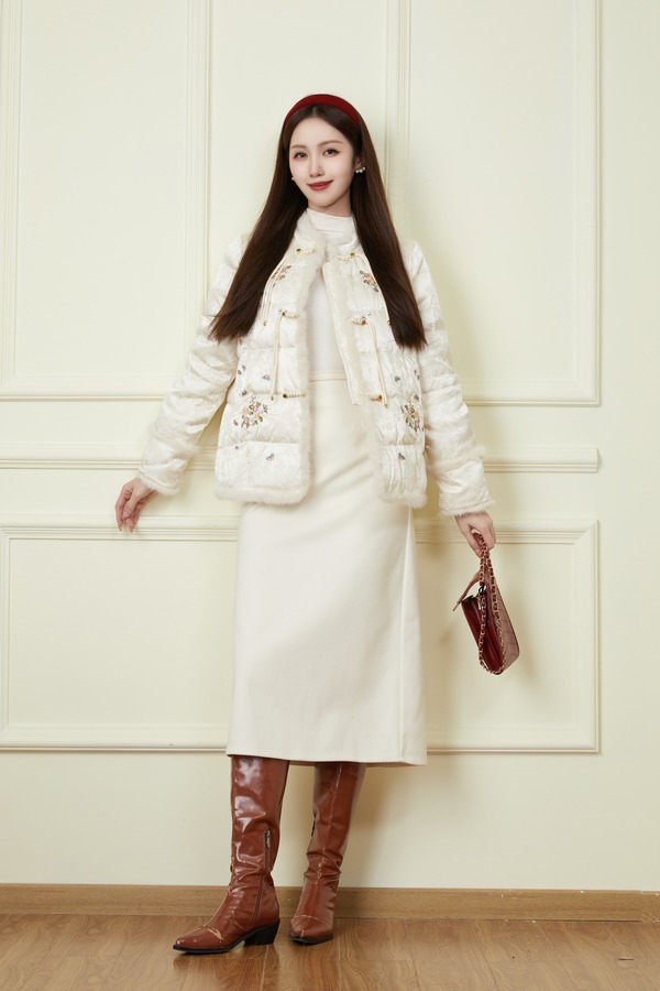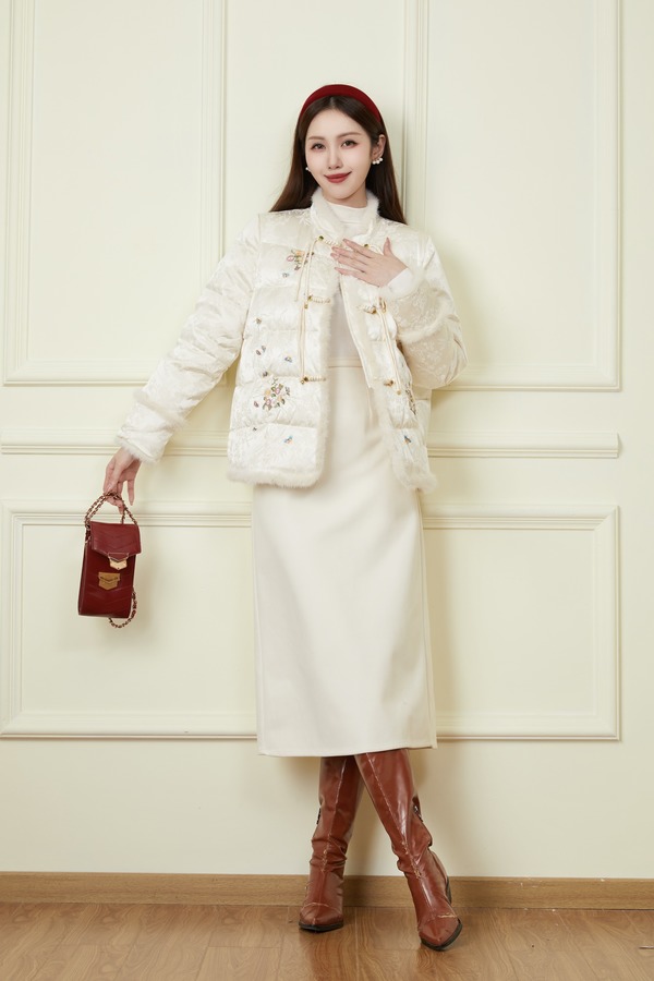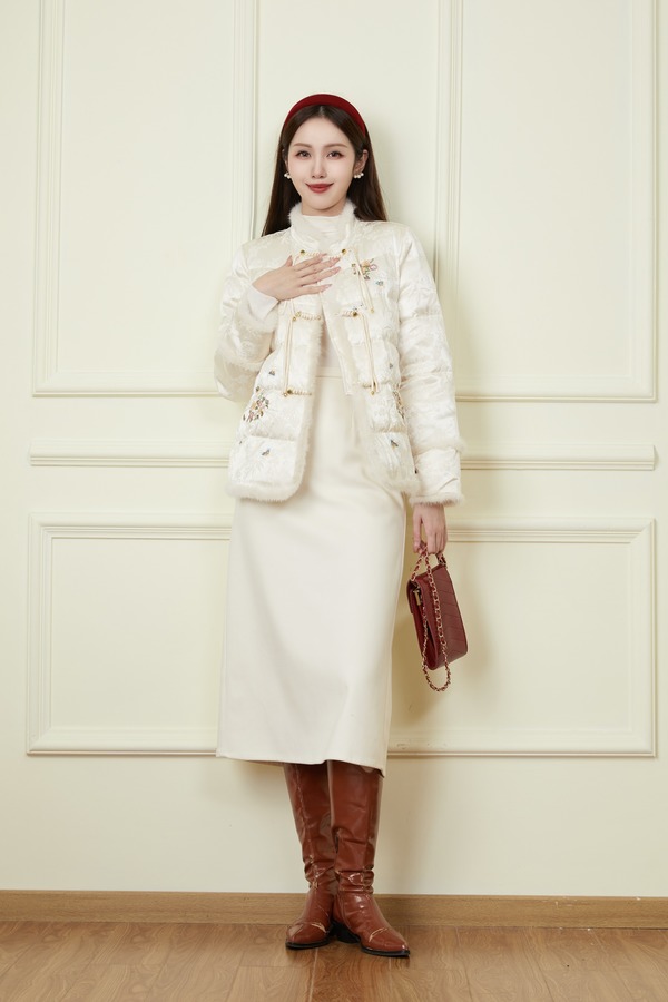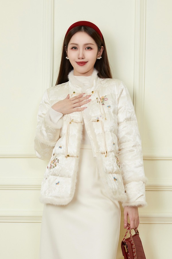 Le Malene 国风刺绣羽绒外套 19749